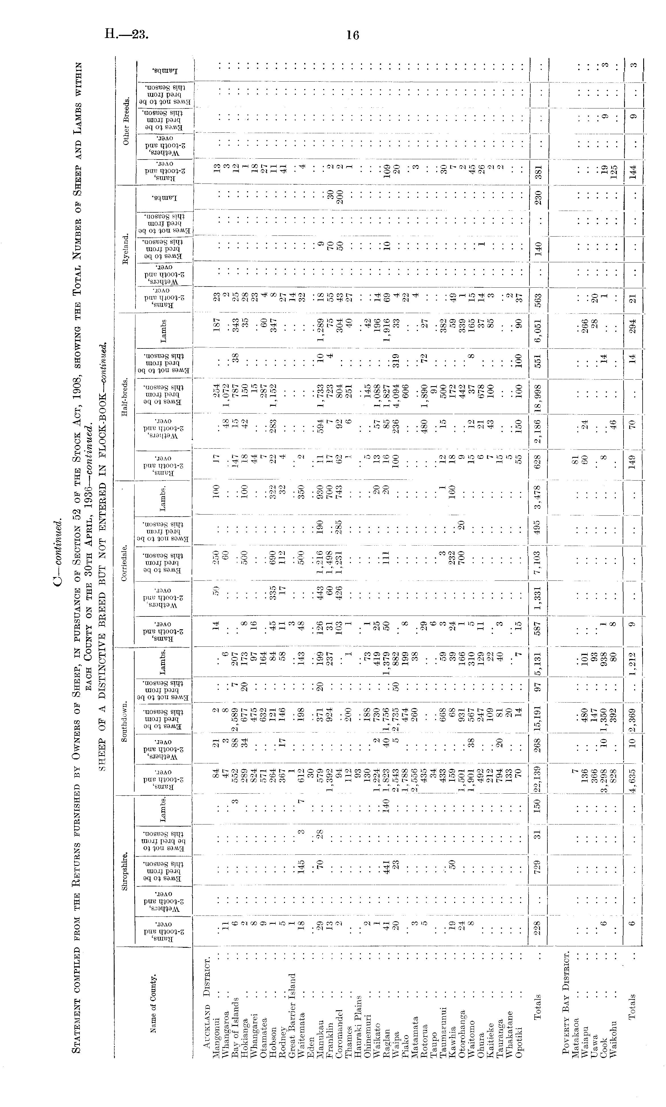 C— continued. Statement compiled from the Returns furnished by Owners of Sheep, in pursuance of Section 52 of the Stock Act, 1908, showing the Total Number of Sheep and Lambs within each County on the 30th April, 1936— continued. SHEEP OF A DISTINCTIVE BREED BUT NOT ENTERED IN FLOCK-BOOK— continued.