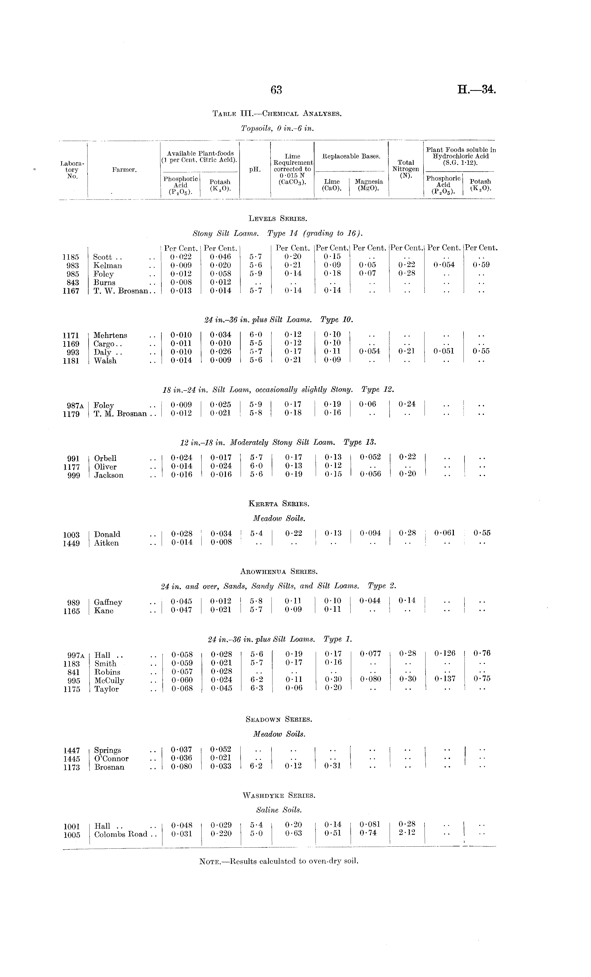 Table III.—Chemical Analyses. Topsoils, 0 in.-6 in.