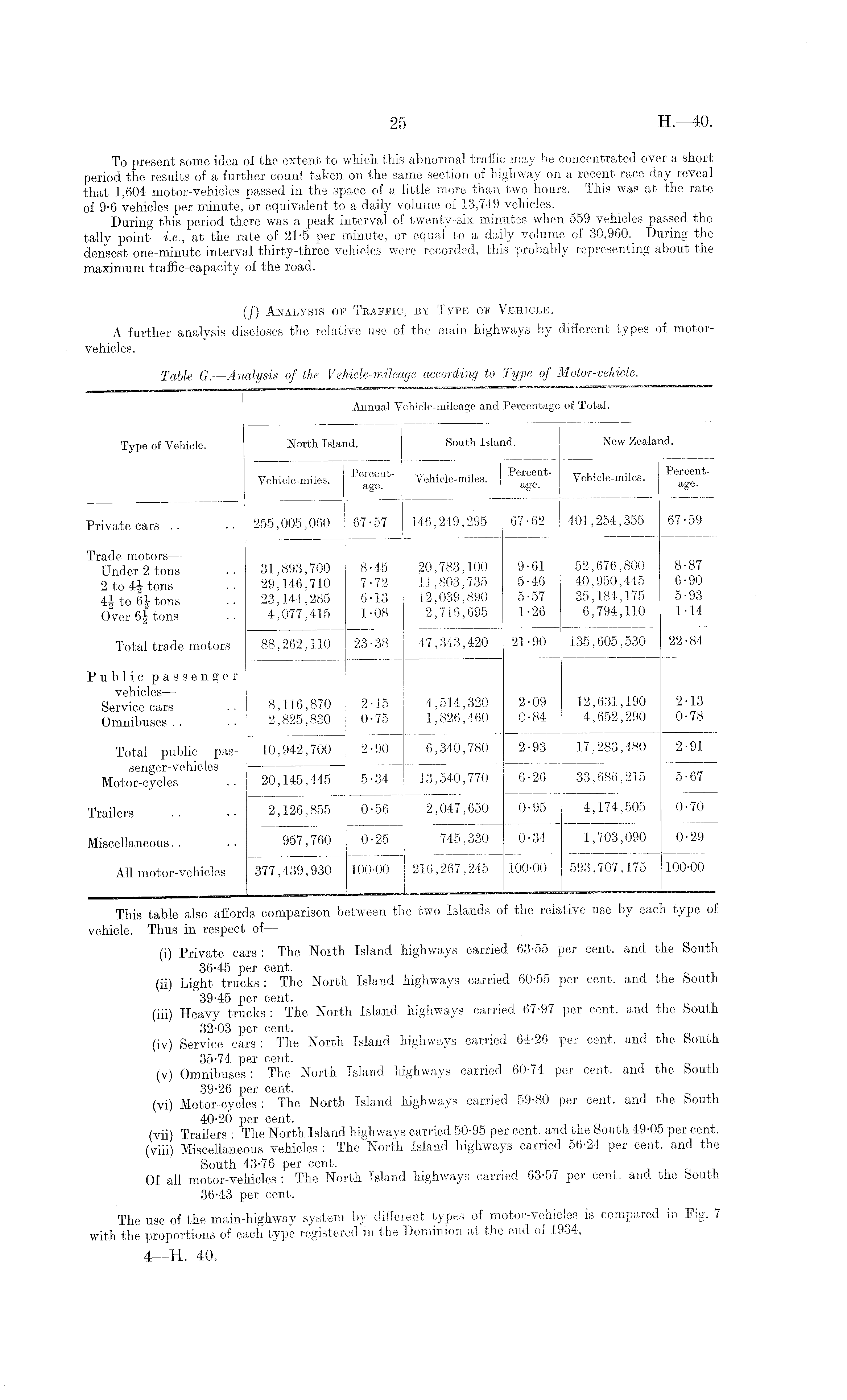 Table G. —Analysis of the Vehicle-mileage according to Type of Motor-vehicle.