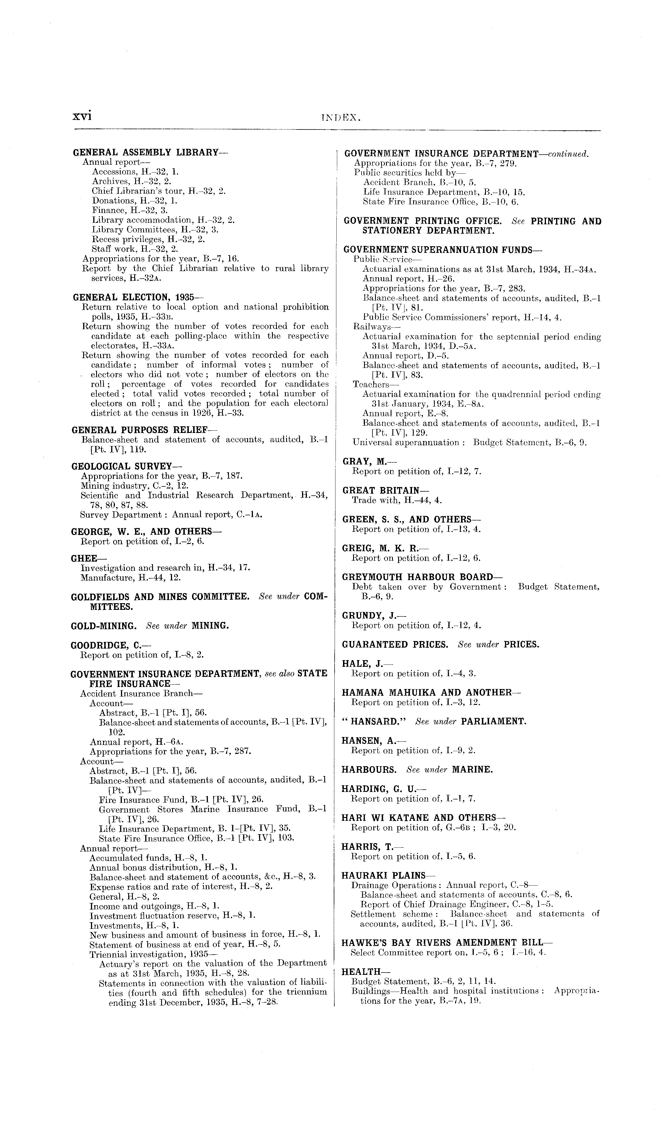 GENERAL ASSEMBLY LIBRARY— GOVERNMENT INSURANCE DEPARTMENT —continued. Annual report — Appropriations for the year, 8.-7, 279. Accessions, H.-32, 1. Public securities held by— Archives, H.-32, 2. Accident Branch, 8.-10, 5. Chief Librarian's tour, H.-32, 2. Life Insurance Department, 8.-10, 15. Donations, H.-32, 1. State Fire Insurance Office, 8.-10, 6. Finance, H.-32, 3. Library accommodation, H.-32, 2. GOVERNMENT PRINTING OFFICE. See PRINTING AND Library Committees, H.-32, 3. STATIONERY DEPARTMENT. Recess privileges, H.-32, 2. Staff work, H.--32, 2. GOVERNMENT SUPERANNUATION FUNDS— Appropriations for the year, 8.-7, 16. Public Service — Report by the Chief Librarian relative to rural library Actuarial examinations as at 31st March, 1934, H.-34a. services, H.-32a. Annual report, H.-26. Appropriations for the year, 8.-7, 283. GENERAL ELECTION, 1935 — Balance-sheet and statements of accounts, audited, 8.-l Return relative to local option and national prohibition [Pt. IV], 81. polls, 1935, H.-338. Public Service Commissioners' report, H.-14, 4. Return showing the number of votes recorded for each Railways— candidate at each polling-place within the respective Actuarial examination for the septennial period ending electorates, H.-33a. 31st March, 1934, D.-sa. Return showing the number of votes recorded for each Annual report, D.-5. candidate ; number of informal votes ; number of Balance-sheet and statements of accounts, audited, 8.-l . electors who did not vote ; number of electors on the [Pt. IV], 83. roll; percentage of votes recorded for candidates Teachers — elected ; total valid votes recorded ; total number of Actuarial examination for the quadrennial period ending electors on roll; and the population for each electoral 31st January, 1934, E.-Ba. district at the census in 1926, H.-33. Annual report, E.-8. Balance-sheet and statements of accounts, audited, 8.-l GENERAL PURPOSES RELIEF— IV ], 129. Balance-sheet and statement of accounts, audited, 8.-l Universal superannuation : Budget Statement, 8.-6, 9. [Pt. IV], 119. GEOLOGICAL SURVEY— GRAY, M.— Appropriations for the year, 8.-7, 187. Re P ort on P etltlon of > L " 12 ' 7 " Mining industry, C.-2, 12. prfat rrttatn_ Scientific and Industrial Research Department, H.-34, m j -i n a a a 78, 80, 87, 88. Trade wlth ' H " 44 ' 4 ' Survey Department: Annual report, C.-la. GREEN, S. S., AND OTHERSGEORGE, W. E., AND OTHERS— Report on petition of, 1.—13, 4. Report on petition of, 1.-2, 6. F p GREIG, M. K. R.— GHEE— Report on petition of, 1.—12, 6. Investigation and research in, H.-34, 17. Manufacture, H.-44, 12. GREYMOUTH HARBOUR BOARD— Debt taken over by Government: Budget Statement, GOLDFIELDS AND MINES COMMITTEE. See under COM- 8.-6, 9. MITTEES. GRUNDY, J.— GOLD-MINING. See under MINING. Report on petition of, 1.-12, 4. GOODRIDGE, C.— GUARANTEED PRICES. See under PRICES. Report on petition of, 1.-8, 2. HALE, jr.— GOVERNMENT INSURANCE DEPARTMENT, see also STATE Report on petition of, 1.-4, 3. FIRE INSURANCE— Accident Insurance Branch— HAMANA MAHUIKA AND ANOTHER — Account— Report on petition of, 1.-3, 12. Abstract, 8.-l [Pt. I], 56. Balance-sheet and statements of accounts, B.—l [Pt. IV], "HANSARD." See under PARLIAMENT. 102. Annual report, H.-6a. HANSEN, A. — Appropriations for the year, 8.-7, 287. Report on petition of, 1.-9, 2. Account — Abstract, 8.-l [Pt. I], 56. HARBOURS. See under MARINE. Balance-sheet and statements of accounts, audited, 8.-l [Pt. IV]— HARDING, G. U.— Fire Insurance Fund, 8.-l [Pt. IV], 26. Report on petition of, 1.-l, 7. Government Stores Marine Insurance Fund, 8.-l [Pt. IV], 26. HARI WI KATANE AND OTHERS— Life Insurance Department, B. l-[Pt. IV], 35. Report on petition of, G.-6b ; 1.-3, 20. State Fire Insurance Office, 8.-l [Pt. IV], 103. Annual report— HARRIS, T. — Accumulated funds, H.-8, 1. Report on petition of, 1.-5, 6. Annual bonus distribution, H.-8, 1. Balance-sheet and statement of accounts, &c., H.-8, 3. HAURAKI PLAINS— Expense ratios and rate of interest, H.-8, 2. Drainage Operations : Annual report, C.-8— General H.-8 2. Balance-sheet and statements of accounts, C.-8, 6. Income and outgoings, H.-8, 1. Report of Chief Drainage Engineer, C.-8, 1-5. Investment fluctuation reserve, H.-8, 1. Settlement scheme: Balance-sheet and statements of Investments, 11.--8, 1. accounts, audited, 8.-l [Pt. IV], 36. New business and amount of business in force, H.-8, 1. Statement of business at end of year, H.-8, 5. HAWKE'S BAY RIVERS AMENDMENT BILL — Triennial investigation, 1935— Select Committee report on, 1.-5, 6 ; 1.-16, 4. Actuary's report on the valuation of the Department as at 31st March, 1935, H.-8, 28. HEALTH — Statements in connection with the valuation of liabili- Budget Statement, 8.-6, 2, 11, 14. ties (fourth and fifth schedules) for the triennium Buildings—Health and hospital institutions : Appropiiaending 31st December, 1935, H.-8, 7-28. tions for the year, 8.-7 a, 19.