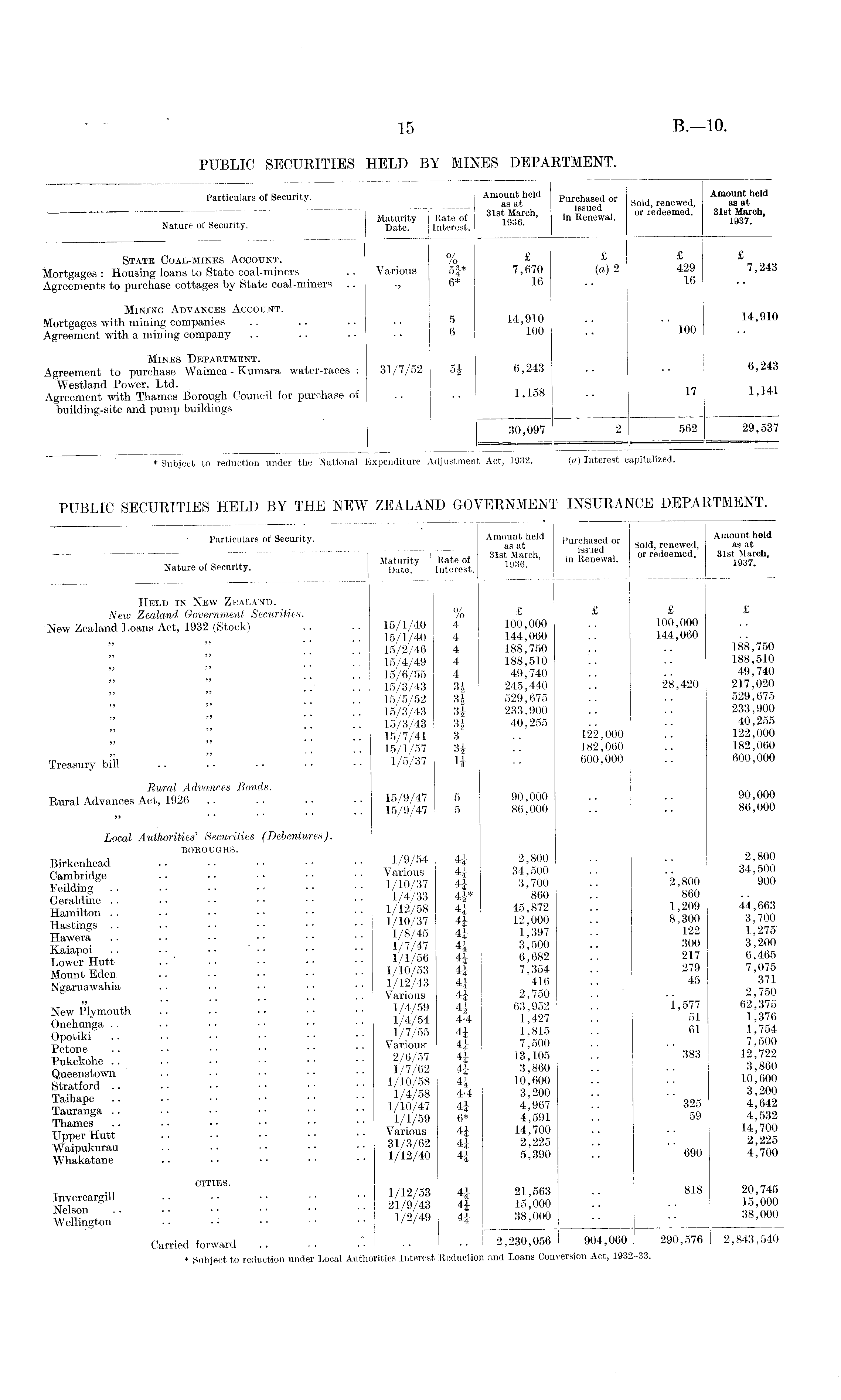 PUBLIC SECURITIES HELD BY THE NEW ZEALAND GOVERNMENT INSURANCE DEPARTMENT.