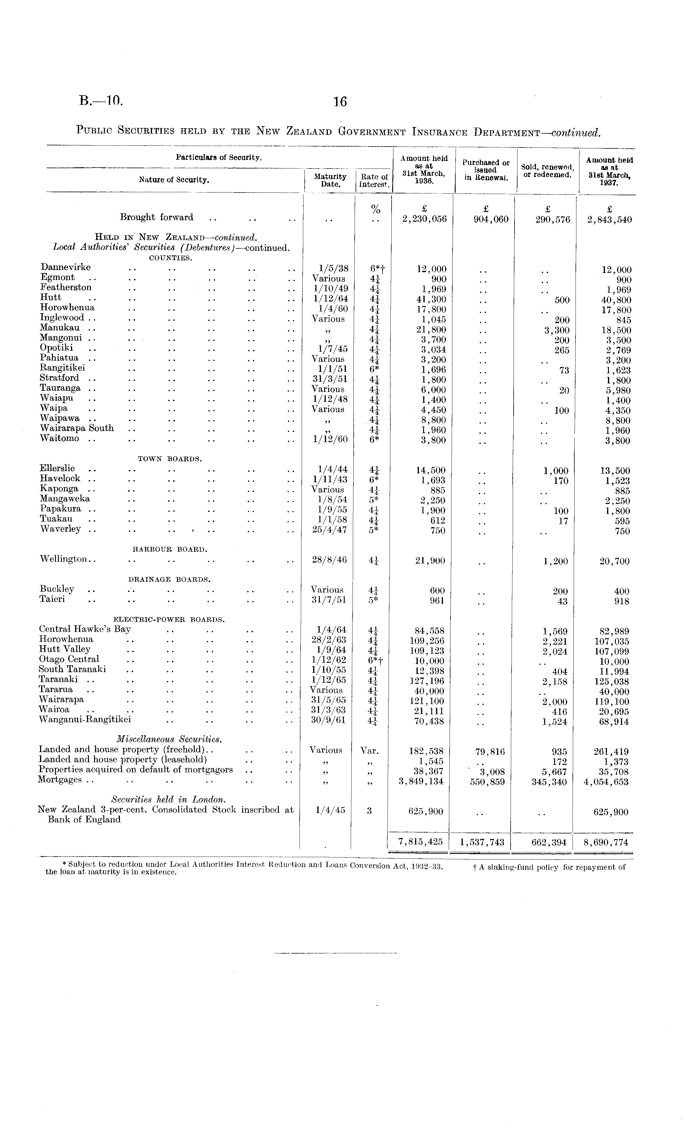 Public Securities held by the New Zealand Government Insurance Department—continued.