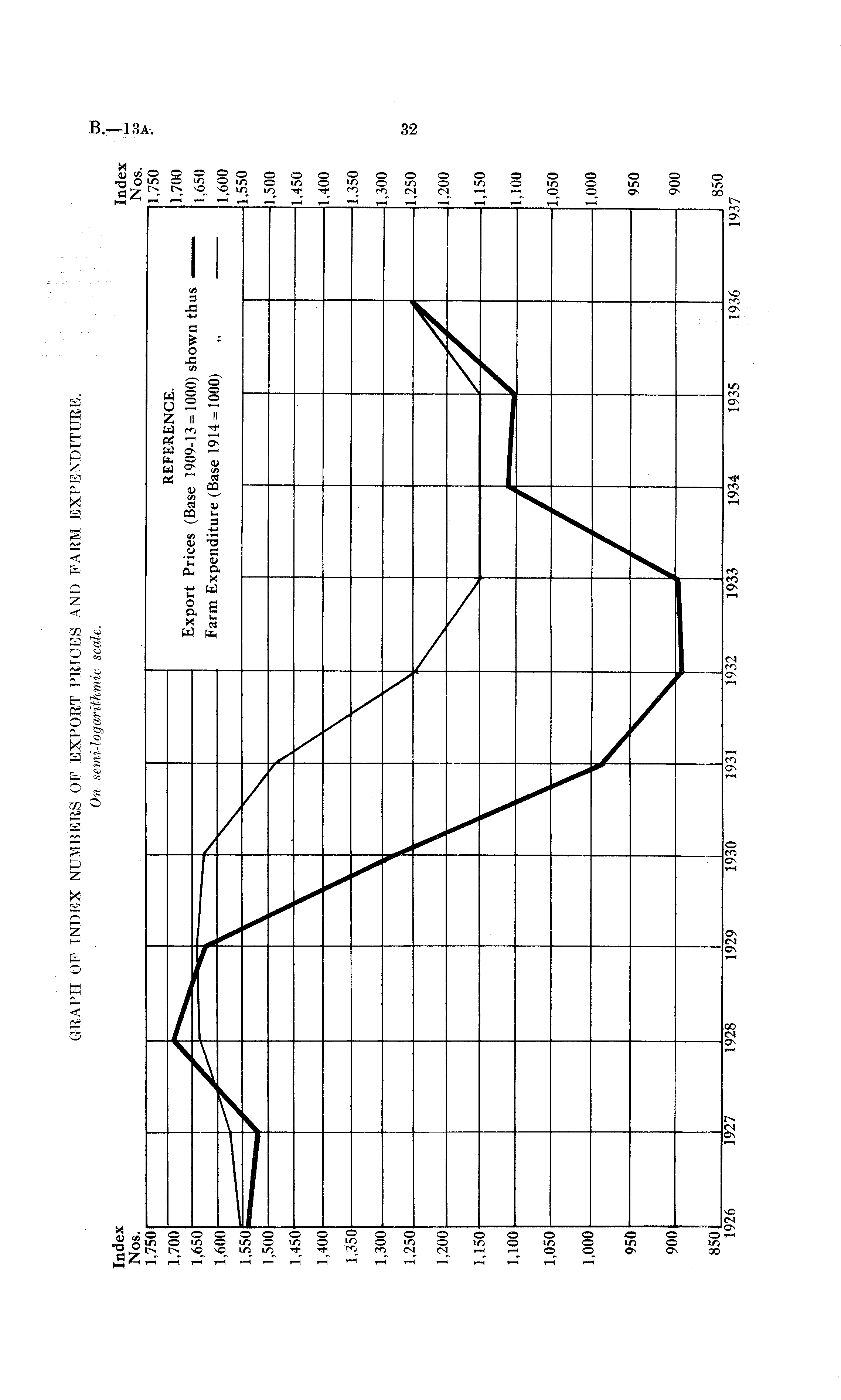 GRAPH OF INDEX NUMBERS OF EXPORT PRICES AND FARM EXPENDITURE. On semi-logarithmic scale.