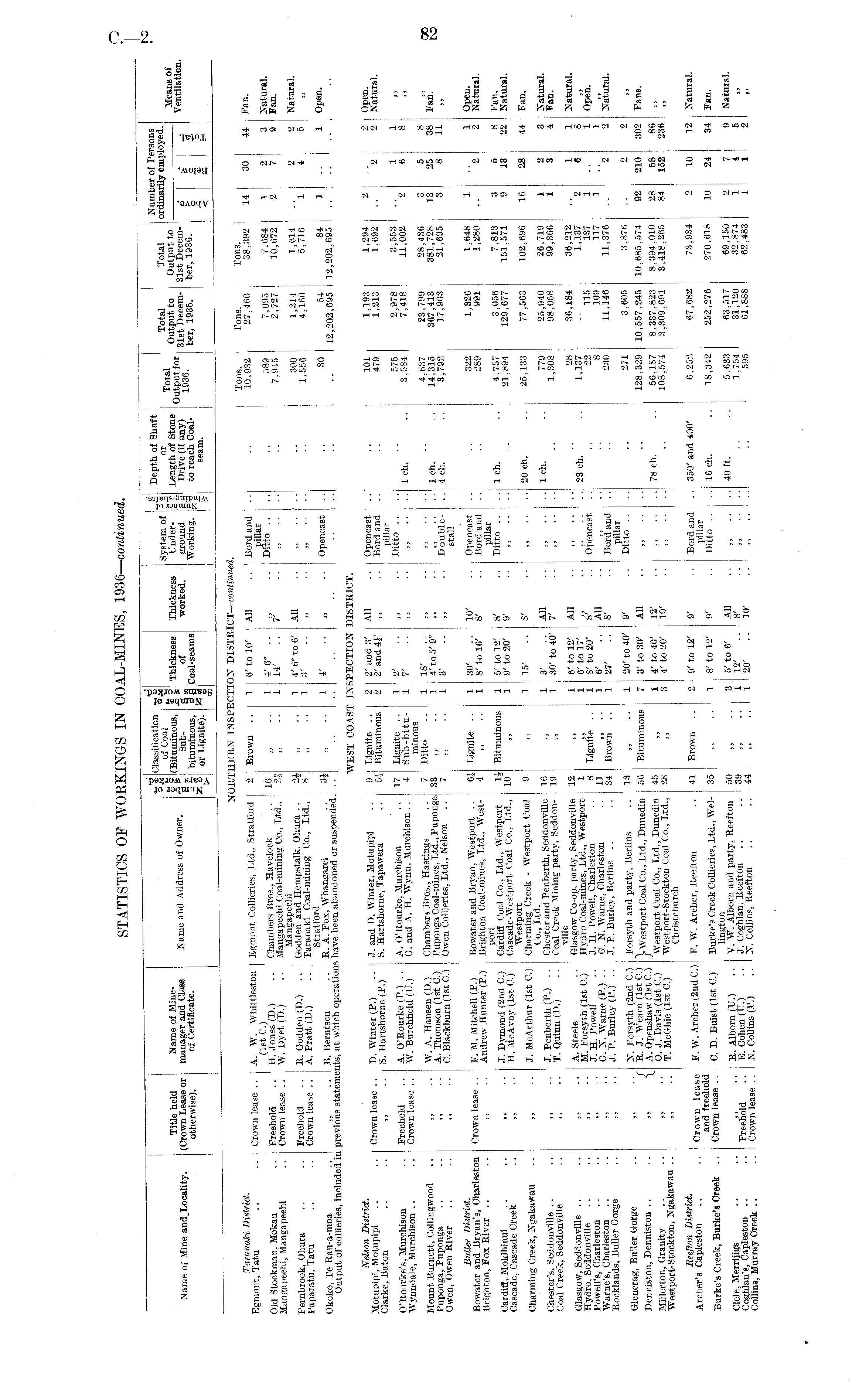 STATISTICS OF WORKINGS IN COAL-MINES, 1936—continued.