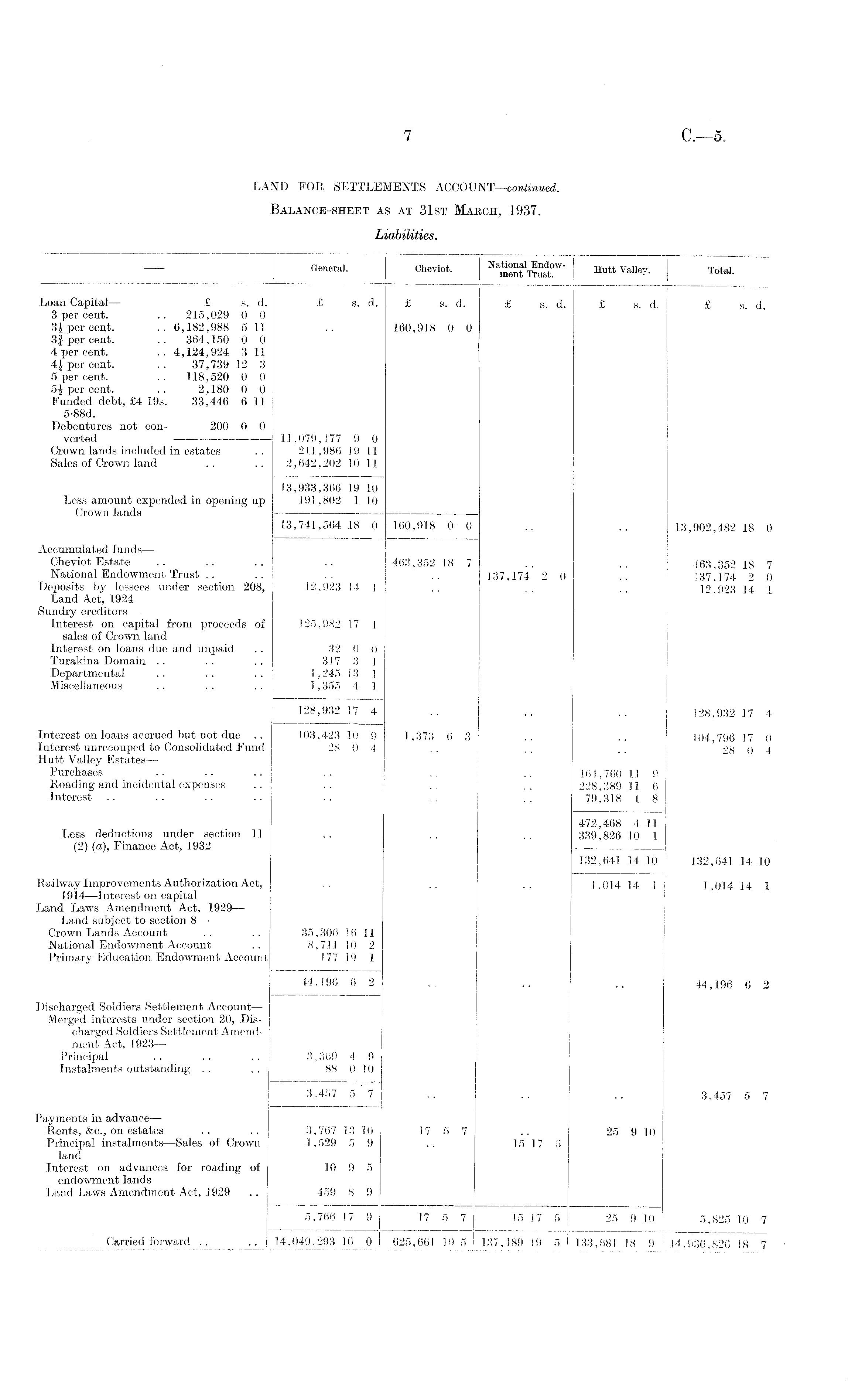 LAND FOR SETTLEMENTS ACCOUNT —continued. Balance-sheet as at 31st March, 1937. Liabilities.