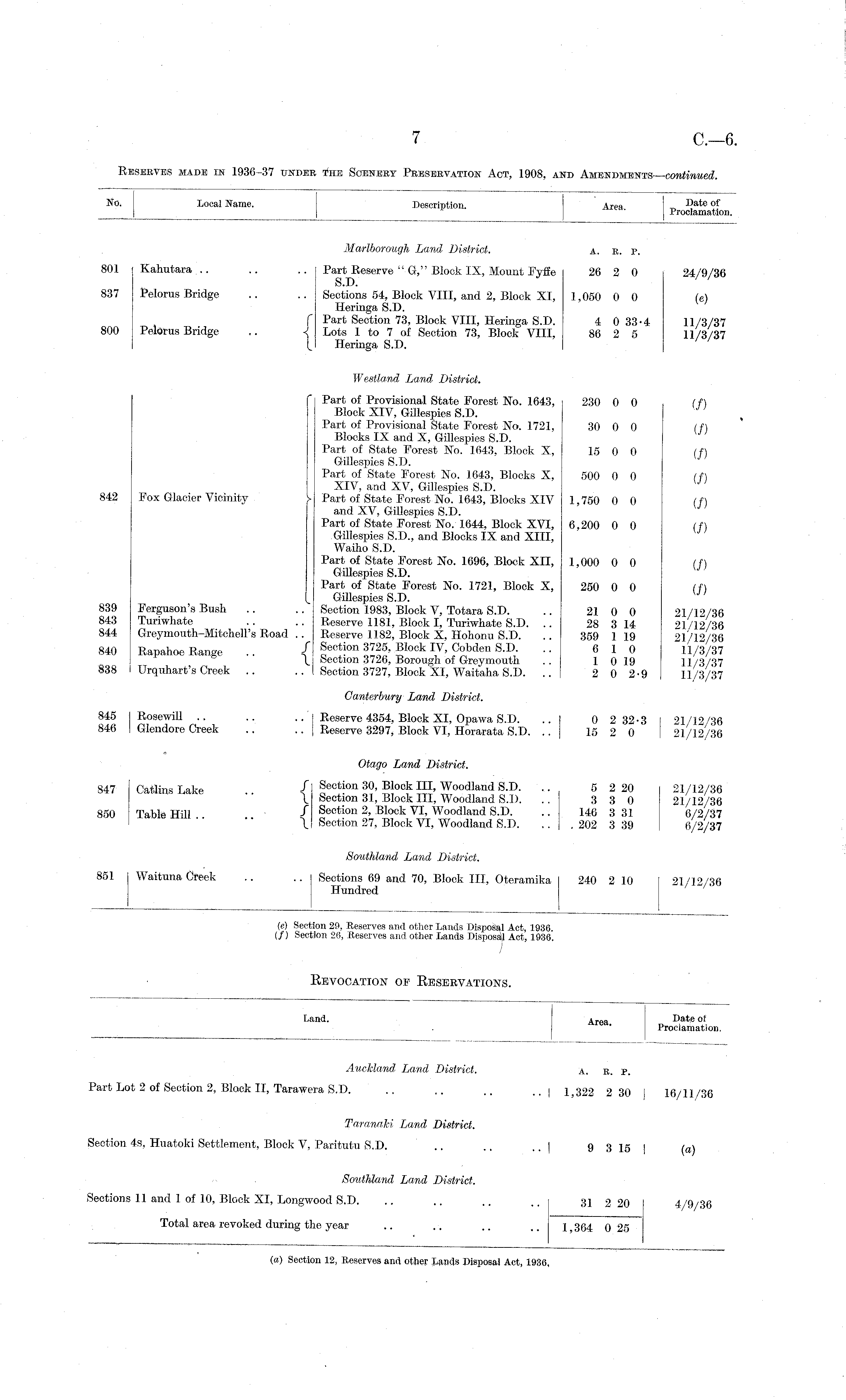 Reserves made in 1936-37 under the Scenery Preservation Act, 1908, and Amendments— continued.