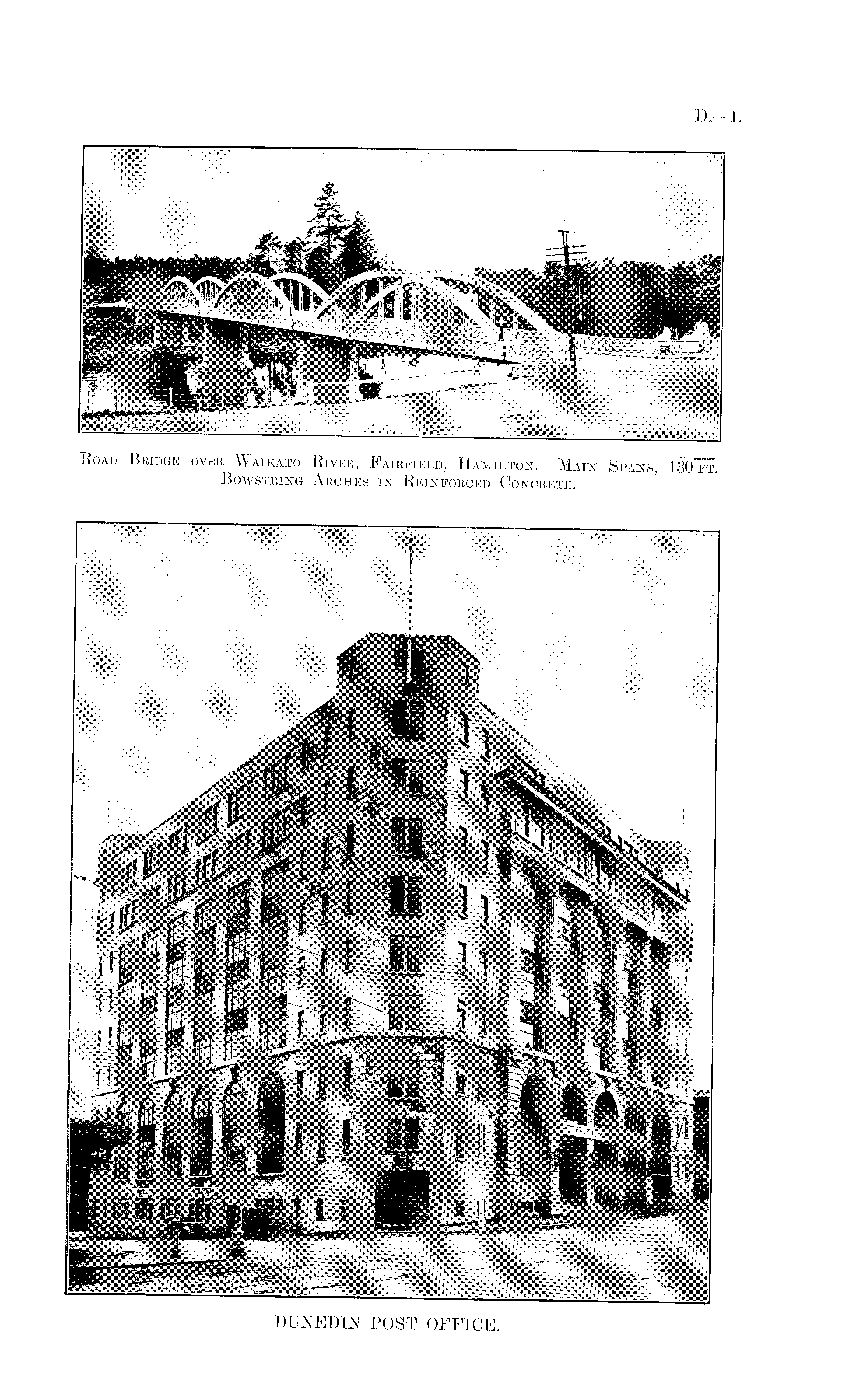 Road Bridge over Waikato River, Fairfield, Hamilton. Main Spans, 130ft. Bowstring Arches in Reinforced Concrete.