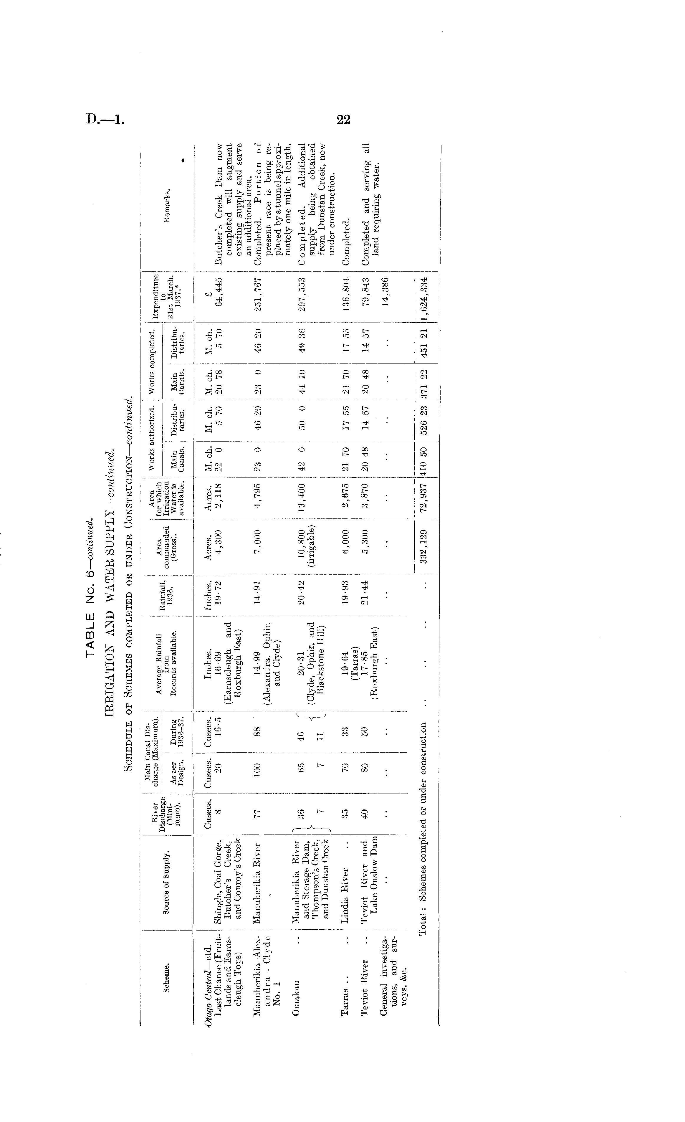 TABLE No. 6— continued. IRRIGATION AND WATER-SUPPLY— continued. Schedule of Schemes completed or under Construction— continued.