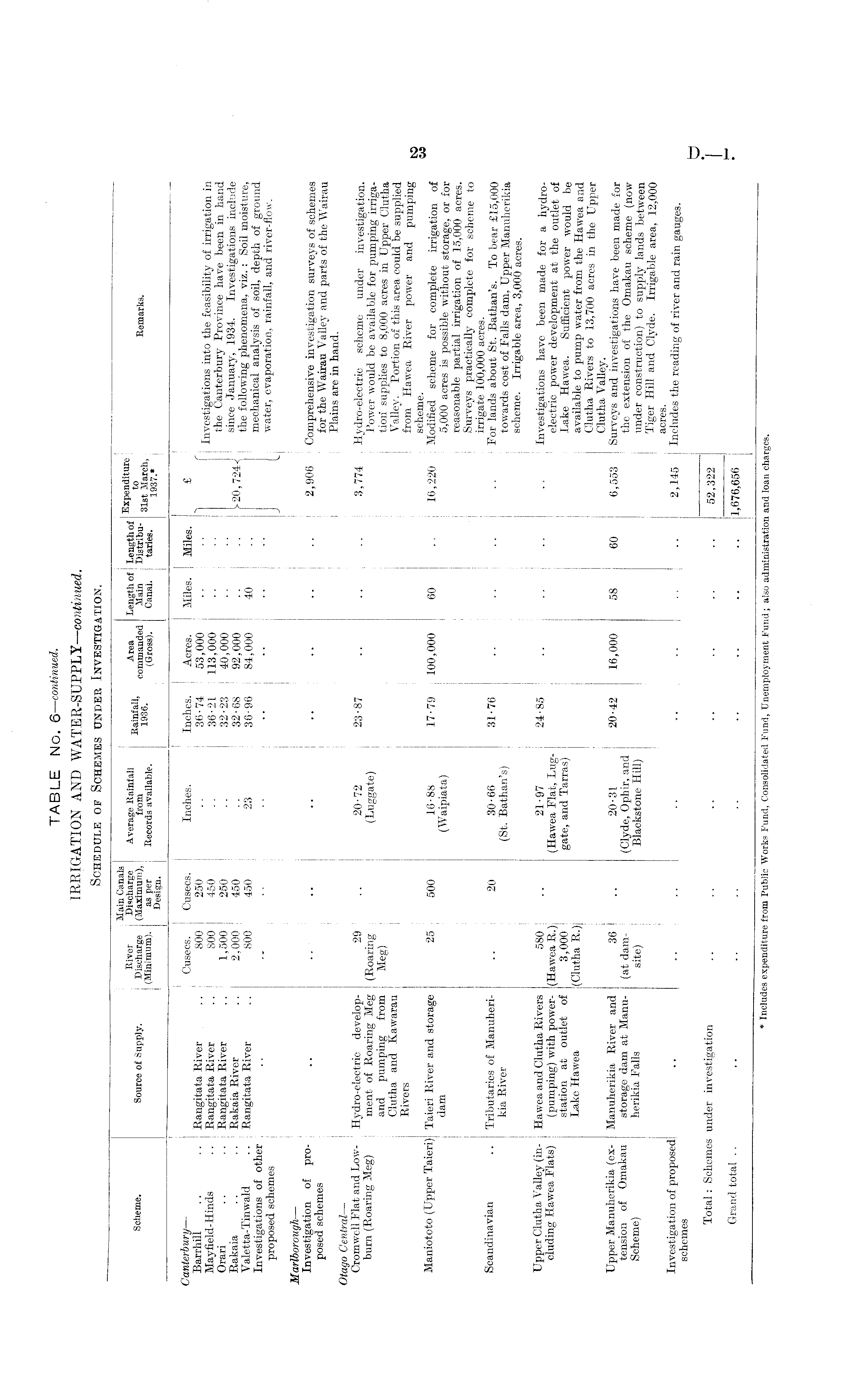 TABLE No. 6— continued. IRRIGATION AND WATER-SUPPLY— continued. Schedule of Schemes under Investigation.