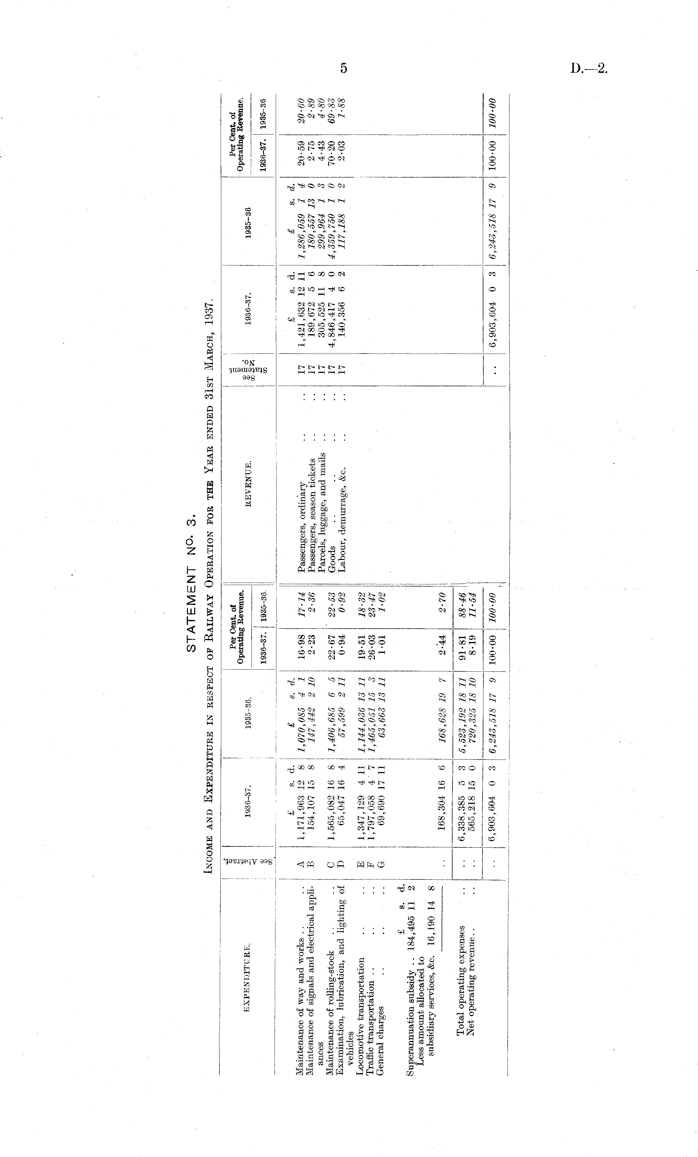 STATEMENT No. 3. Income and Expenditure in respect of Railway Operation for the Year ended 31st March, 1937.