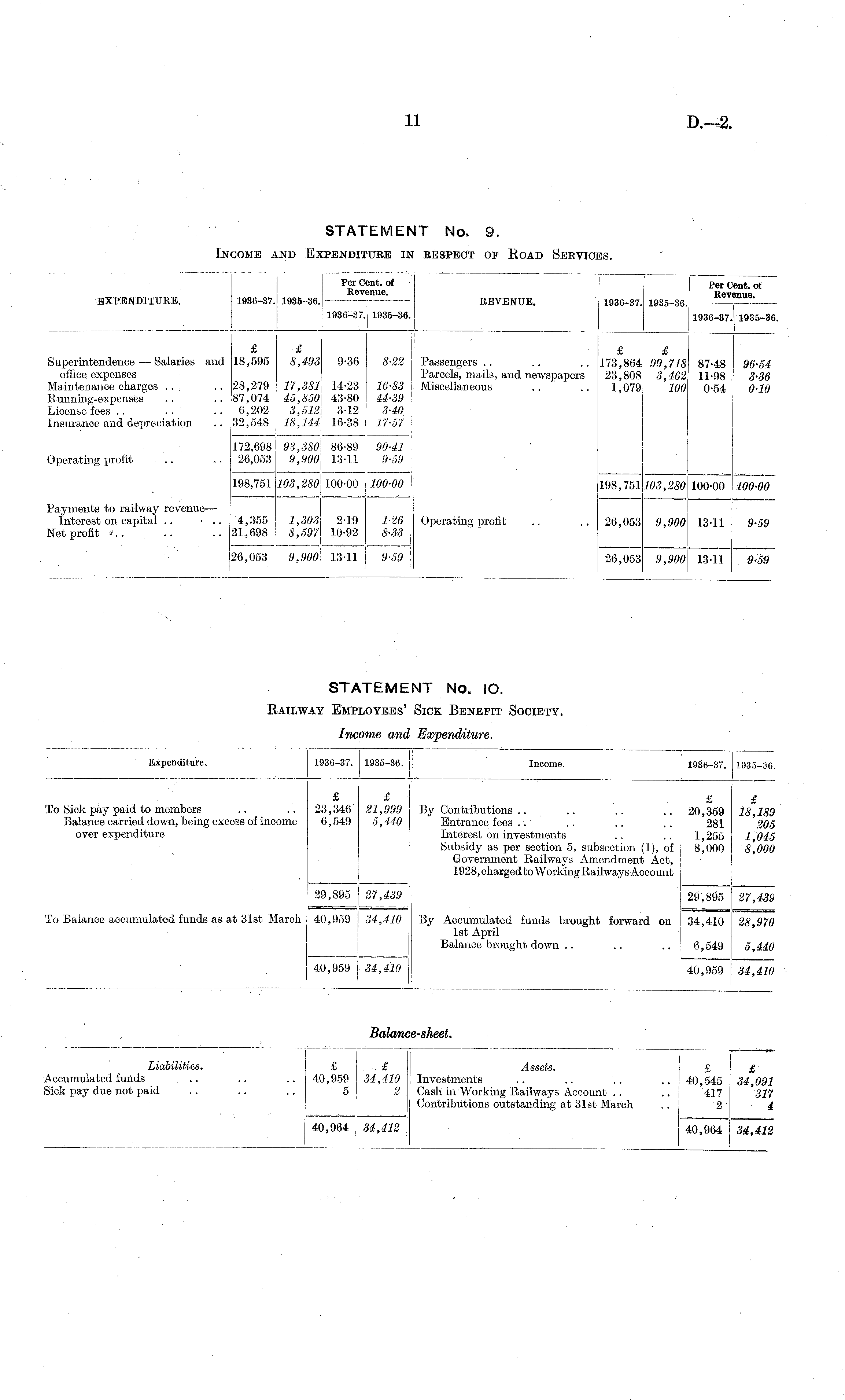 STATEMENT No. 9. Income and Expenditure in respect of Road Services.