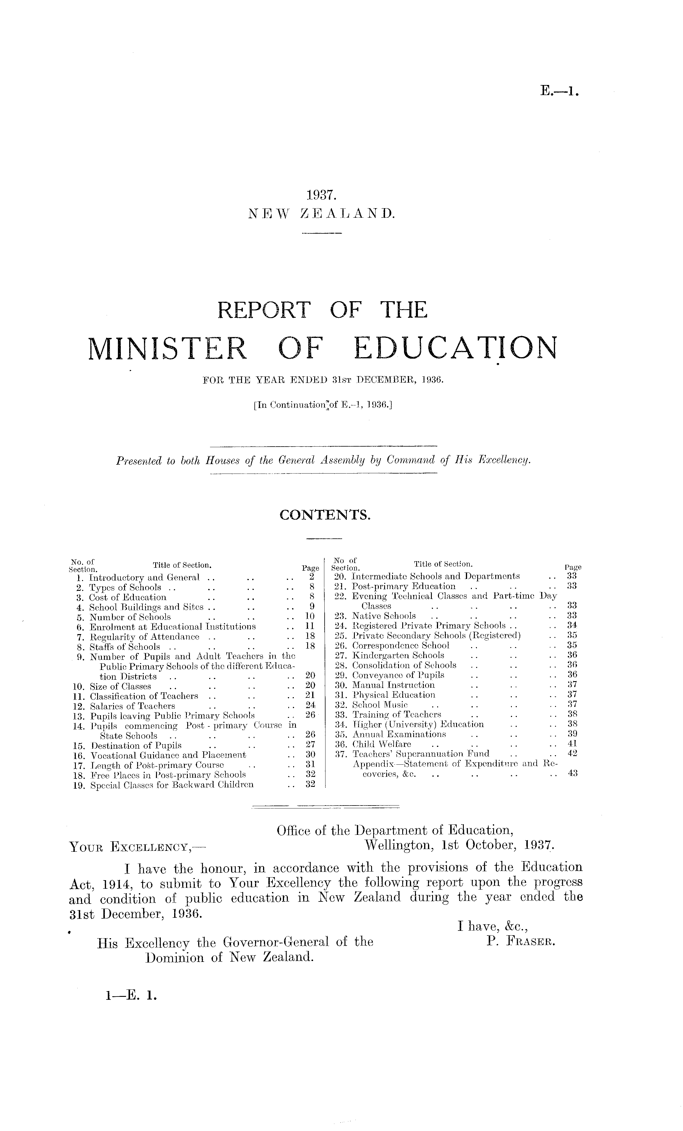 REPORT OF THE MINISTER OF EDUCATION FOR THE YEAR ENDED 31st DECEMBER, 1936. [In Continuation of E.-1, 1936.]