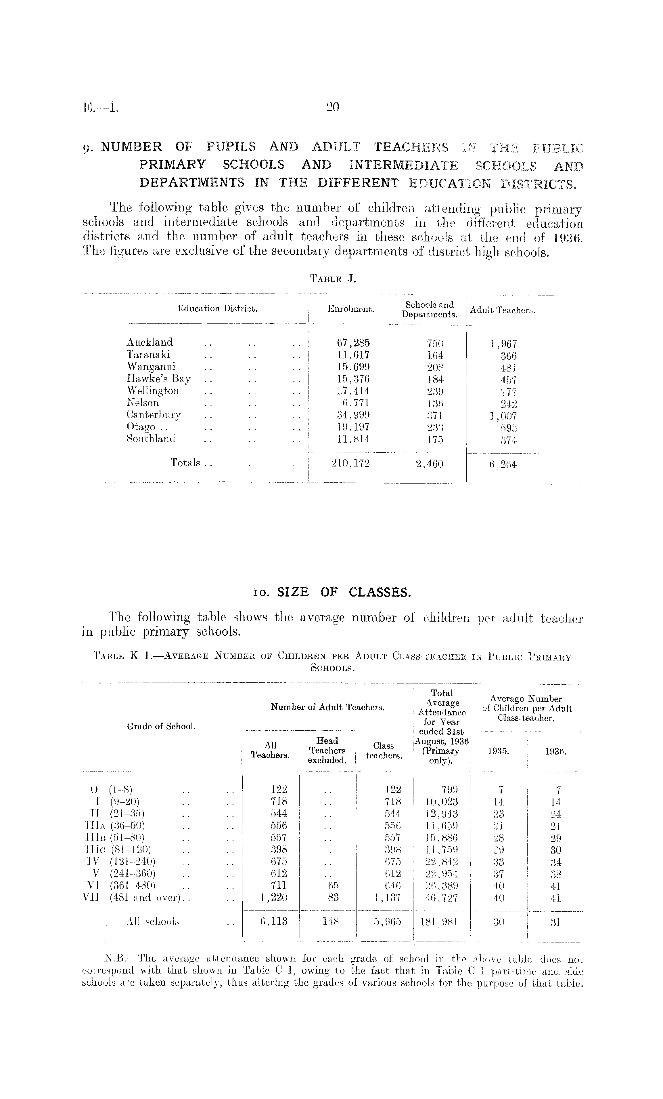 9. NUMBER OF PUPILS AND ADULT TEACHERS IN THE PUBLIC PRIMARY SCHOOLS AND INTERMEDIATE SCHOOLS AND DEPARTMENTS IN THE DIFFERENT EDUCATION DISTRICTS. The following table gives the number of children attending public primary schools and intermediate schools and departments in the different education districts and the number of adult teachers in these schools at the end of 1936. The figures are exclusive of the secondary departments of district high schools.