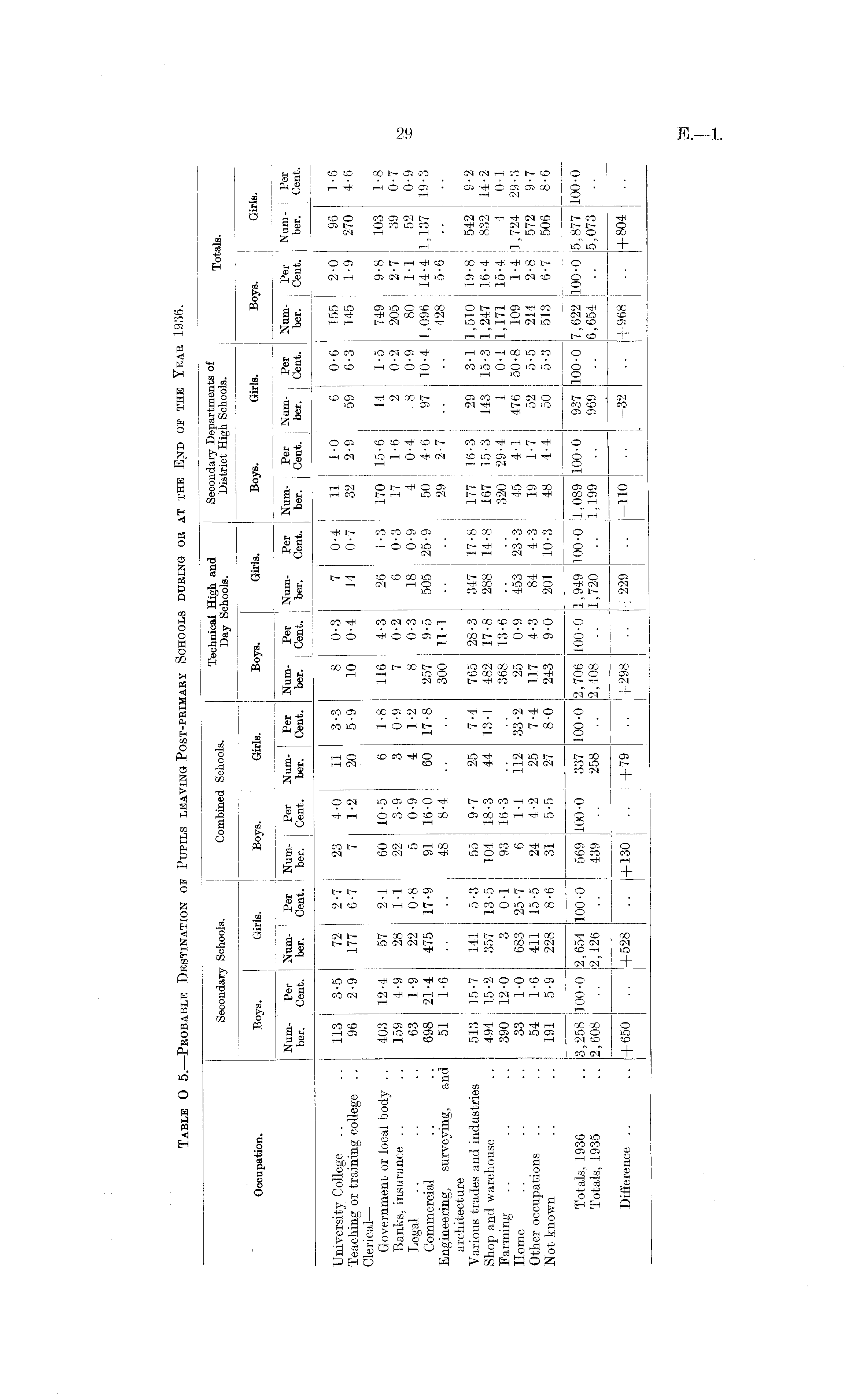 Table O 5.—Probable Destination of Pupils leaving Post-primary Schools during or at the End of the Year 1936.