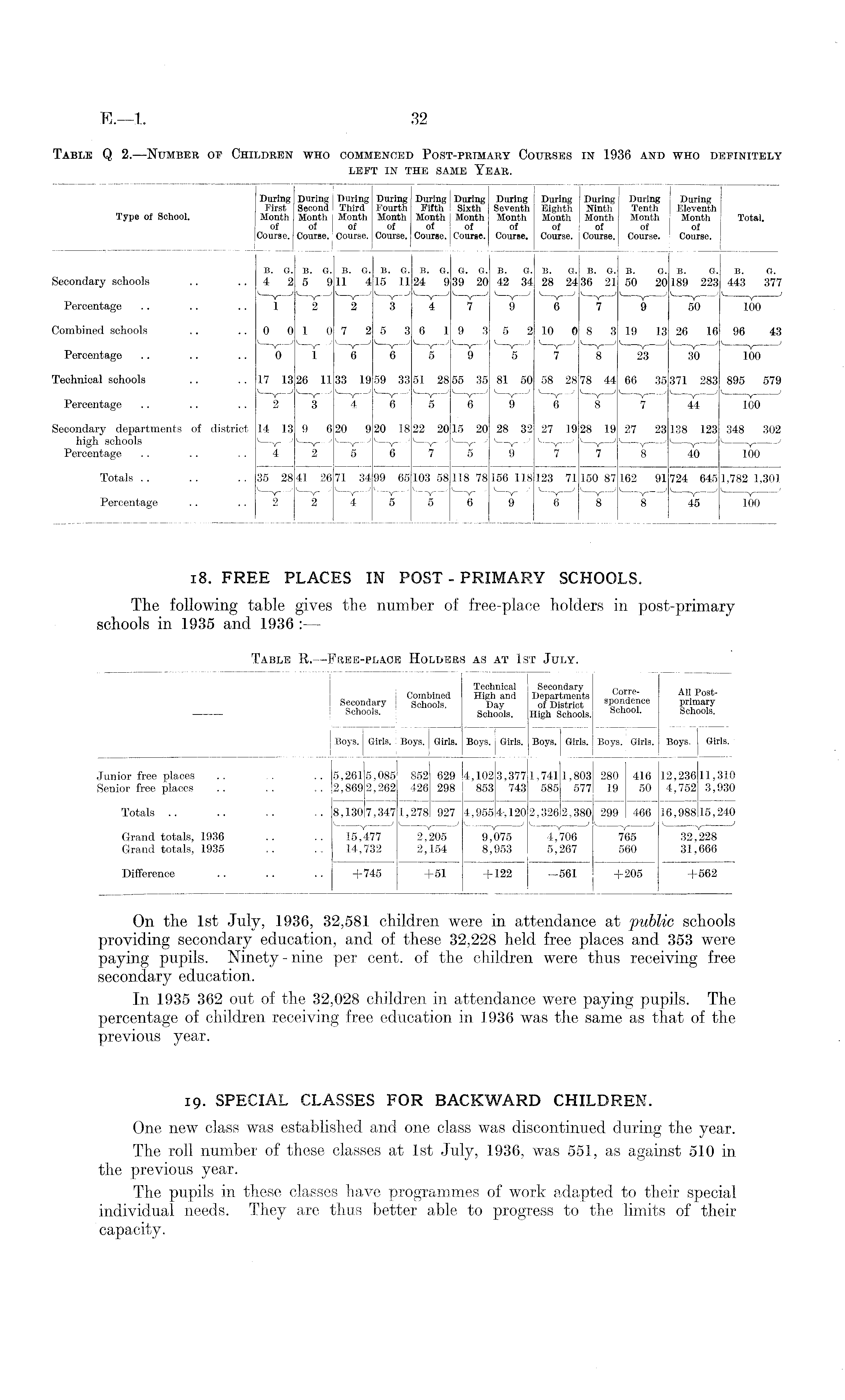 Table Q 2.—Number of Children who commenced Post-primary Courses in 1936 and who definitely left in the same Year.