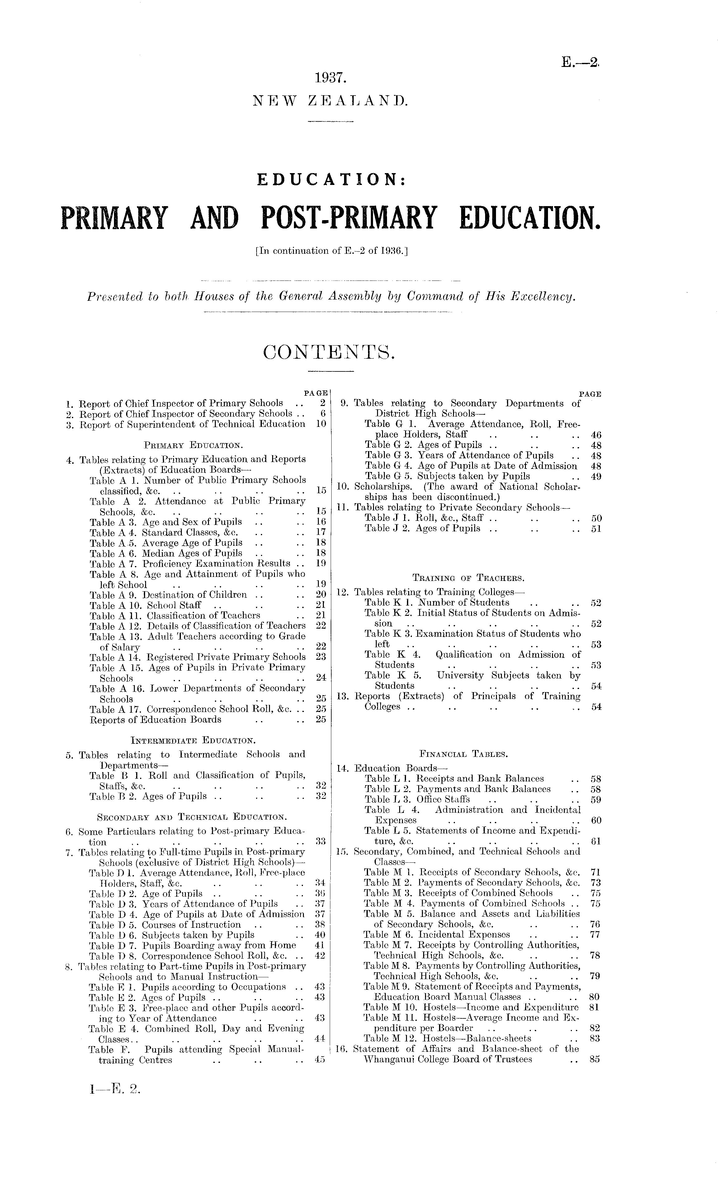 EDUCATION: PRIMARY AND POST-PRIMARY EDUCATION. [In continuation of E.-2 of 1936.]