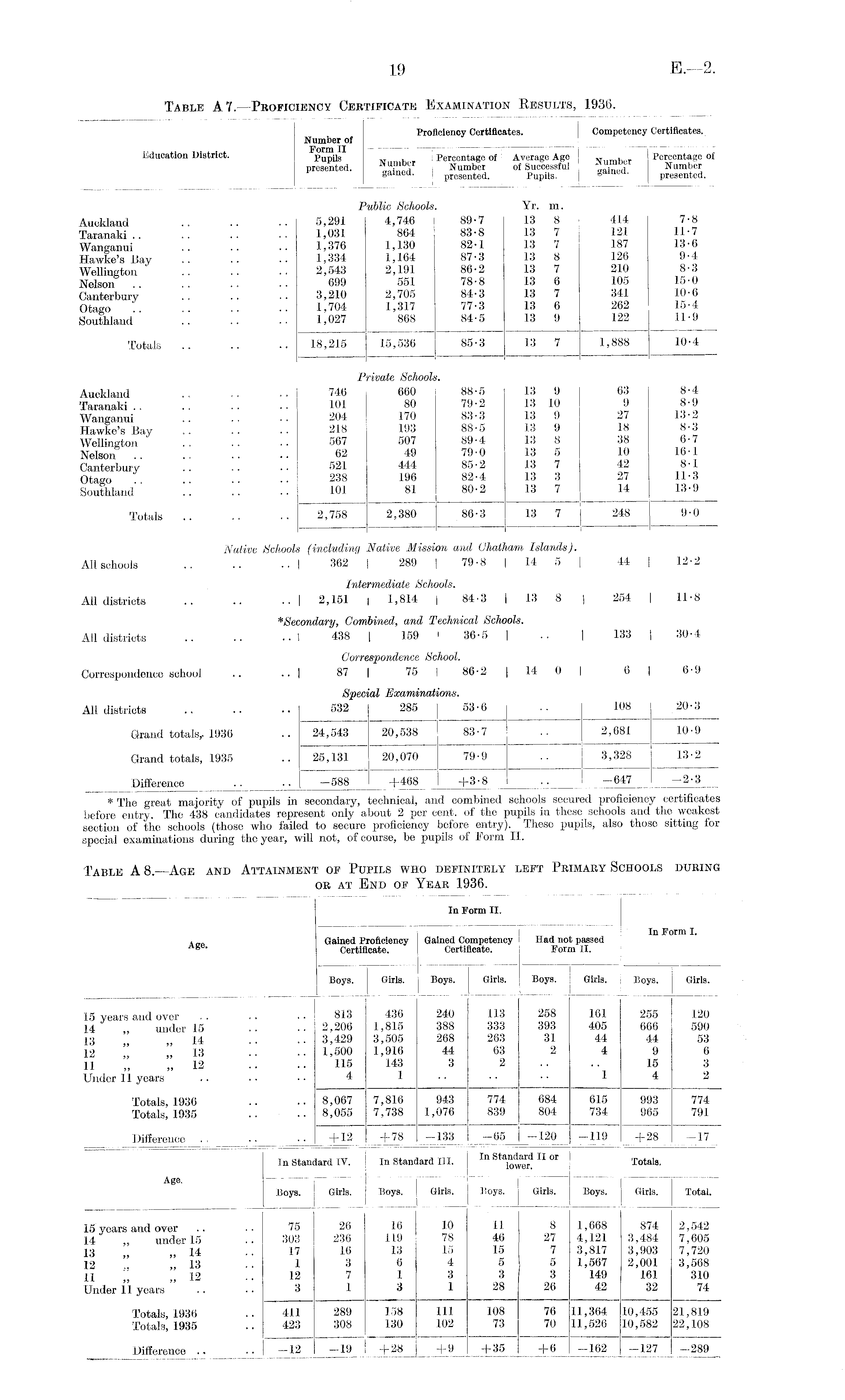 Table A7. —Proficiency Certificate Examination Results, 1936.