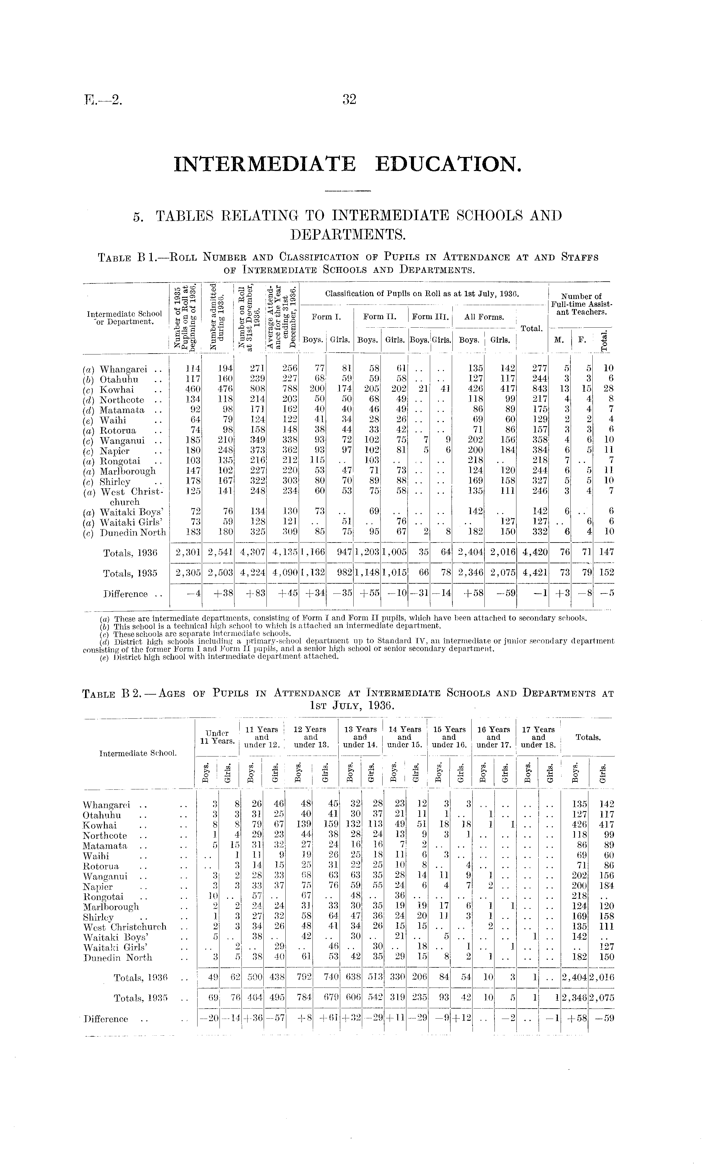 Table B2.—Ages of Pupils in Attendance at Intermediate Schools and Departments at 1st July, 1936.