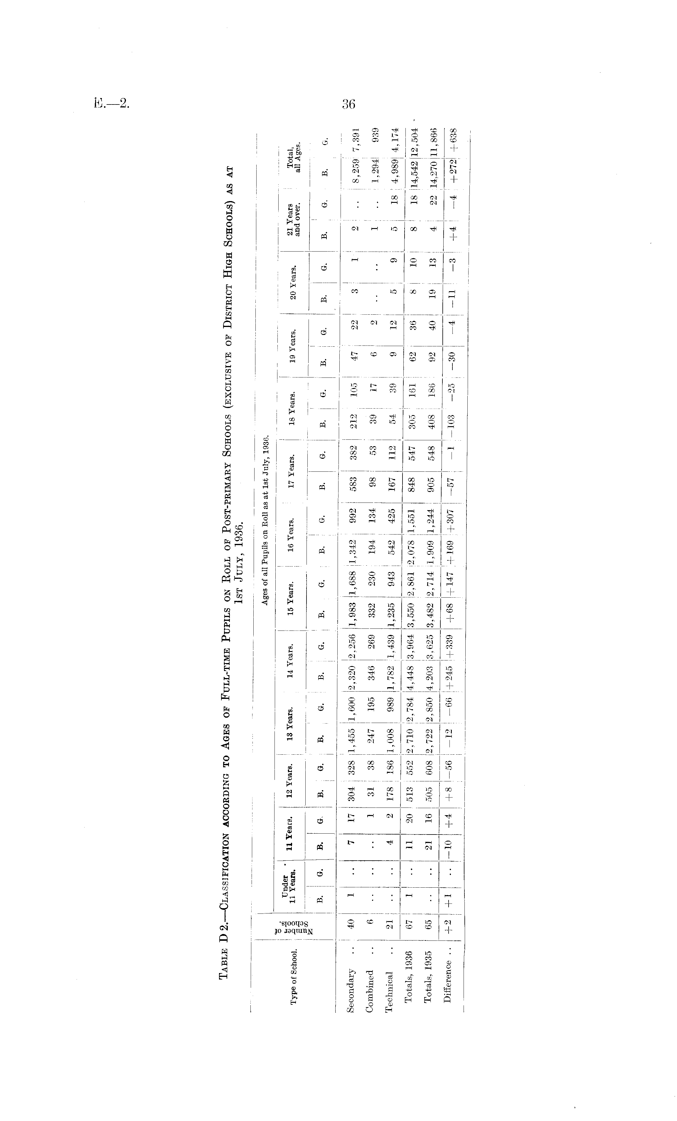 Table D 2.—Classification according to Ages of Full-time Pupils on Roll of Post-primary Schools (exclusive of District High Schools) as at 1st July, 1936.