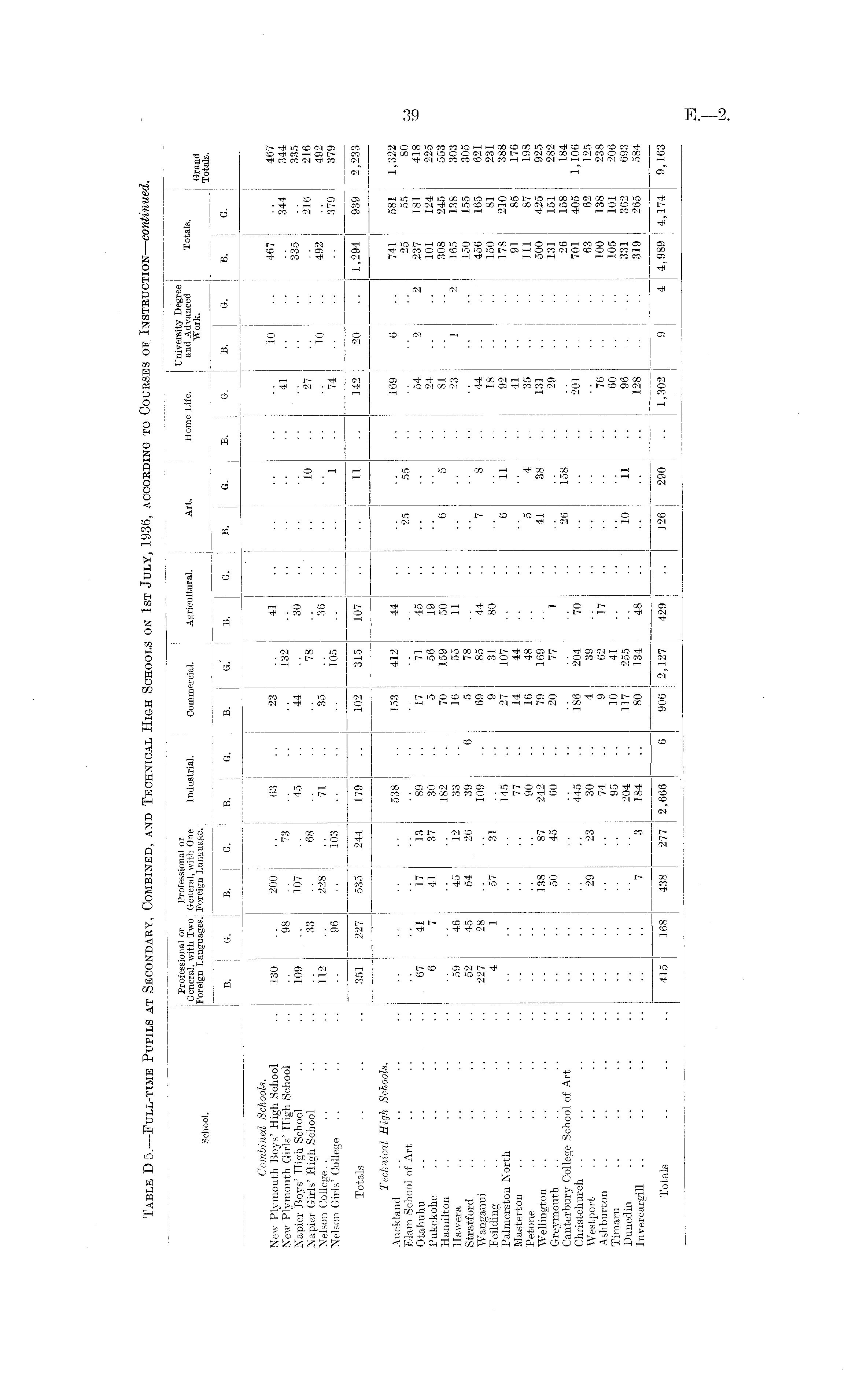 Table D 5.—Full-time Pupils at Secondary, Combined, and Technical High Schools on 1st July, 1936, according to Courses of Instruction— continued.
