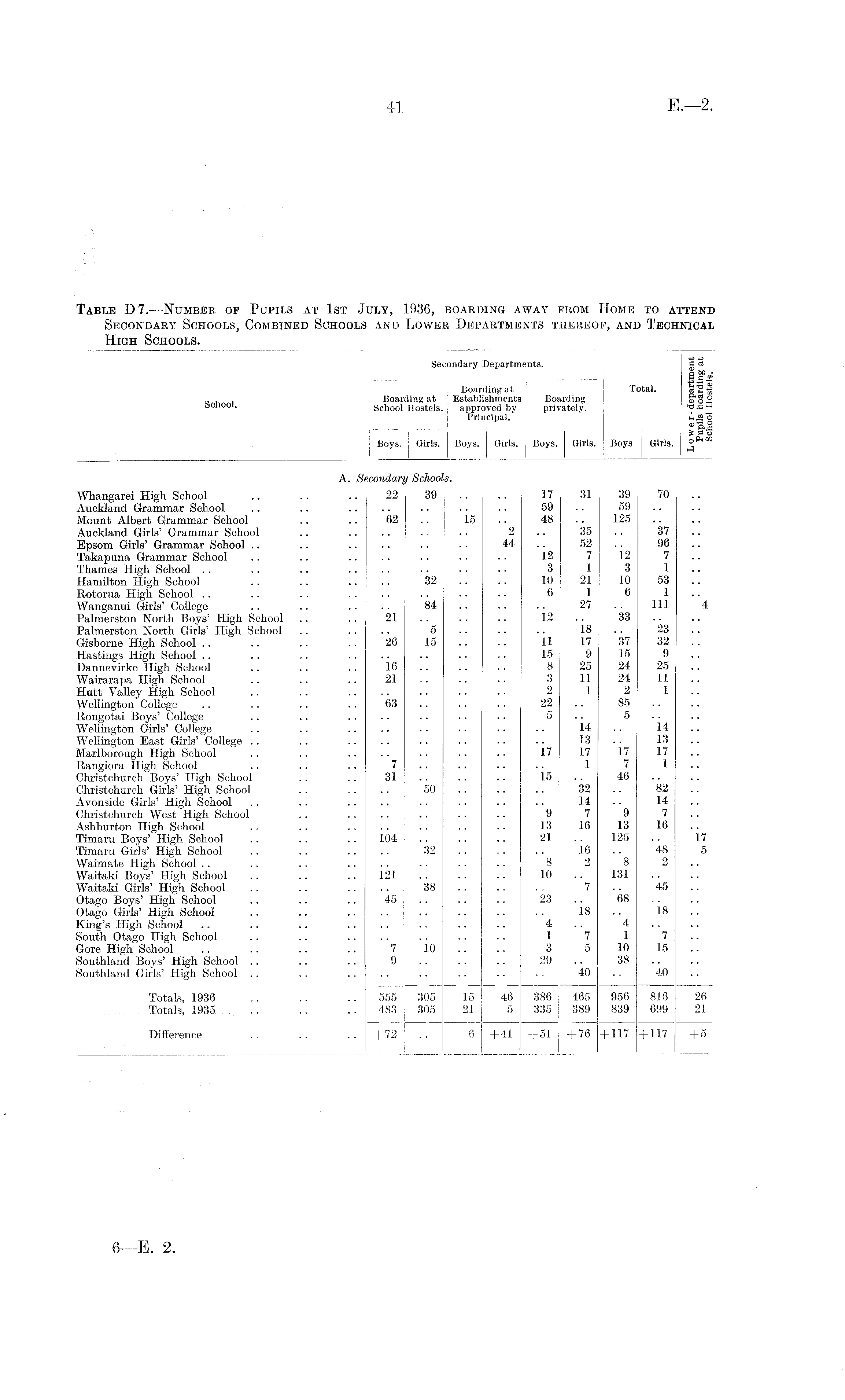 Table D7. —Number of Pupils at 1st July, 1936, boarding away from Home to attend Secondary Schools, Combined Schools and Lower Departments thereof, and Technical High Schools.