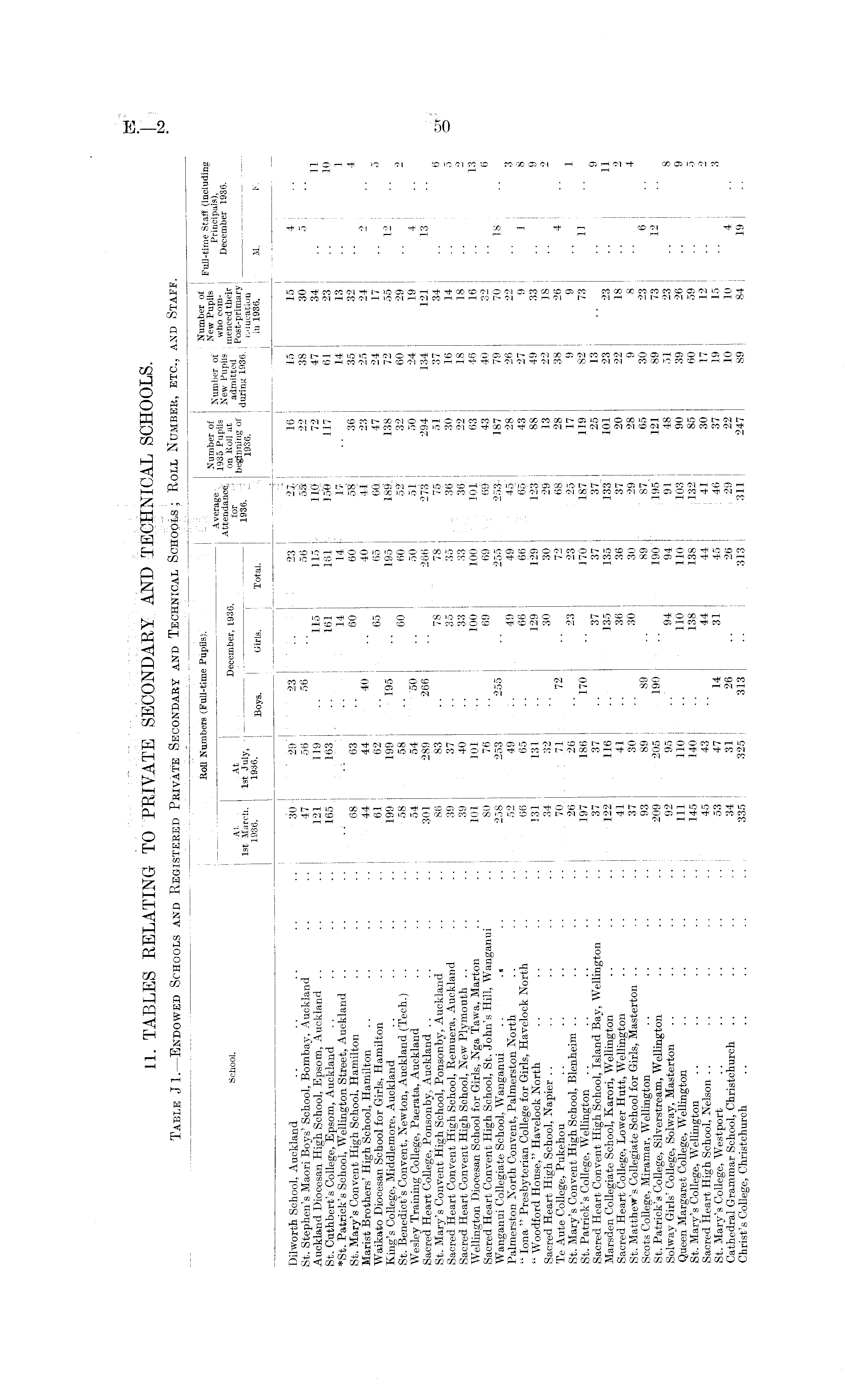 Roll Numbers (Full-time Pupils). • : : | Number of Fu i]_ t j me staff (including — : » . i Average ° f Number of Ne " P Principals), School At December, 1936. Attendance | Jncedthdr December 1936. 1st March, : - «36. - «S&M 1936. 1936. Boys. Girls. Total. in 1936. M. i' . _ —— — ' — ' j Dilworth School, Auckland .. .. .. .. .. 30 29 23 . . 23 2J 16 15 15 4 St. Stephen's Maori Boys' School, Bombay, Auckland .. .. 47 56 56 56 5ls 22 38 30 5 Auckland Diocesan High School, Epsom, Auckland .. .. .. 121 119 .. 115 115 r 11,0 72 47 34 St. Cuthbert's College, Epsom, Auckland .. .. .. .. 165, 163 .. 161 161 150 11/ 61 23 .. 10 *St. Patrick's School, Wellington Street, Auckland .. .. .. .. . . • • 14 14 1:7- .. 14 13 St. Mary's Convent High School, Hamilton .. .. •. 68 63 .. 60 60 5§ 36 35 32 4 Marist Brothers' High School, Hamilton .. .. .. • • 44 44 40 .. 40 44 23 25 24 2 Waikato Diocesan School for Girls, Hamilton .. .. .. 61 62 65 65 6.0 47 24 17 King's College, Middlemore, Auckland .. . . .. . . 199 199 195 .. 195 189. 138 72 55 12 St. Benedict's Convent, Newton, Auckland (Tech.) .. .. .. 58 58 .. 60 60 52 32 60 29 Wesley Training College, Paerata, Auckland .. .. .. 54 54 50 .. 50 51 50 24 19 4 Sacred Heart College, Ponsonby, Auckland .. .. .. .. 301 289 266 .. 266 273 294 134 121 13 j St. Mary's Convent High School, Ponsonby, Auckland .. .. 86 83 .. 78 78 7§ 51 3/ 34 j 6 Sacred Heart Convent High School, Remuera, Auckland .. .. 39 37 .. 35 35 36 30 16 14 Sacred Heart Convent High School, New Plymouth .. .. .. 39 40 .. 33 33 36 22 18 18 2 Wellington Diocesan School for Girls, Nga Tawa, Marton .. .. 101 101 .. 100 100 101 63 46 16 .. 13 Sacred Heart Convent High School, St. John's Hill, Wanganui .. 80 76 69 69 69 43 40 32 6 Wanganui Collegiate School, Wanganui .. .« .. .. 258 253 255 .. 255 253 187 79 70 18 Palmerston North Convent, Palmerston North .. .. .. i 52 49 . . 49 49 45 28 26 22 " Iona" Presbyterian College for Girls, Havelock North .. .. 66 65 .. 66 66 6B 43 2/ 9 1 " Woodford House," Havelock North .. .. .. -• 131 131 .. 129 129 123 88 49 33 Sacred Heart High School, Napier .. .. .. . - - • 34 32 .. 30 30 29 13 22 18 Te Aute College, Pukehou .. .. .. .. .. 70 71 72 .. 72 68, 28 38 26 4 St. Mary's Convent High School, Blenheim .. .. .. .. 26 26 .. 23 23 25' 17 9 9 St. Patrick's College, Wellington .. .. •• •• •• 197 186 170 .. 170 187 119 82 73 11 Sacred Heart Convent High School, Island Bay, Wellington .. .. 37 37 37 37 37 25 13 .. .. 9 Marsden Collegiate School, Karori, Wellington .. .. .. 122 116 .. 135 135 133 101 23 23 .. 11 Sacred Heart College, Lower Hutt, Wellington .. . . • • 41 41 36 36 37 20 22 18 St. Matthew's Collegiate School for Girls, Masterton .. .. .. 37 30 30 30 29 28 9 8 4 Scots College, Miramar, Wellington .. .. •• •• ( 93 89 89 .. 89 87 65 30 23 6 St. Patrick's College, Silverstream, Wellington .. .. | 209 205 190 • 190 195 121 89 73 12 Solway Girls' College, Solway, Masterton .. .. • • • • 92 95 .. 94 94 91 48 51 23 Queen Margaret College, Wellington .. .. •• -• j 111 HO •• 110 110 103 90 39 26 9 St. Mary's College, Wellington .. .. .. •• •• I 145 140 .. 138 138 132 85 60 59 Sacred Heart High School, Nelson .. .. .. .. • - j 45 43 44 44 i 41 30 17 12 L St. Mary's College, Westport .. .. .. .. •• j 53 47 14 31 45 \ 46 37 19 15 Cathedral Grammar School, Christchurch .. .. .. .. 34 31 26 .. 26 j 29 22 10 10 4 Christ's College, Christchurch .. .. .. .. .. i 335 325 313 .. 313 311 247 89 84 19