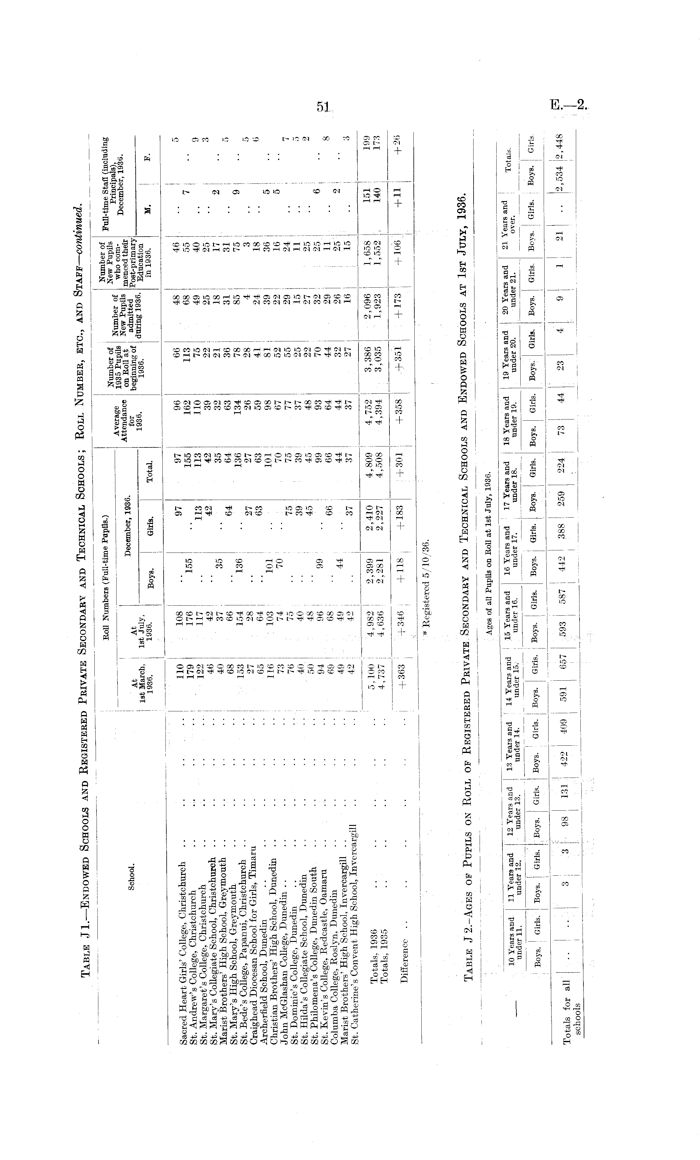 Table J1.—Endowed Schools and Registered Private Secondary and Technical Schools; Roll Number, etc., and Staff—continued.