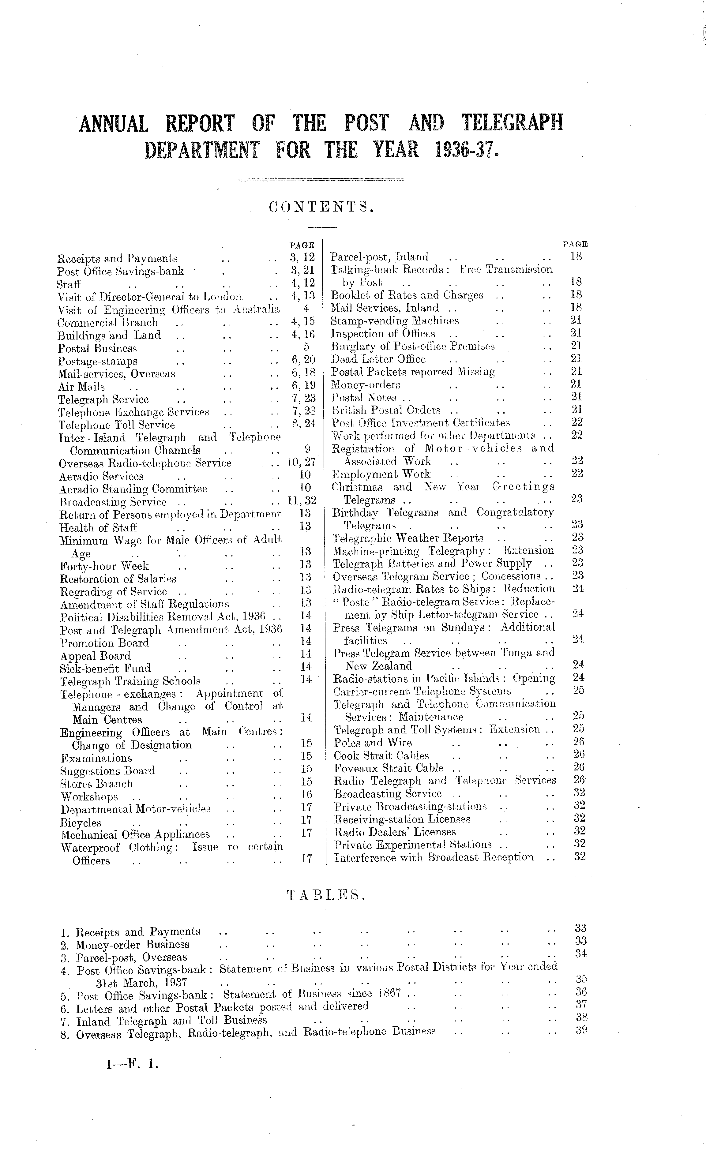 ANNUAL REPORT OF THE POST AND TELEGRAPH DEPARTMENT FOR THE YEAR 1936-37.