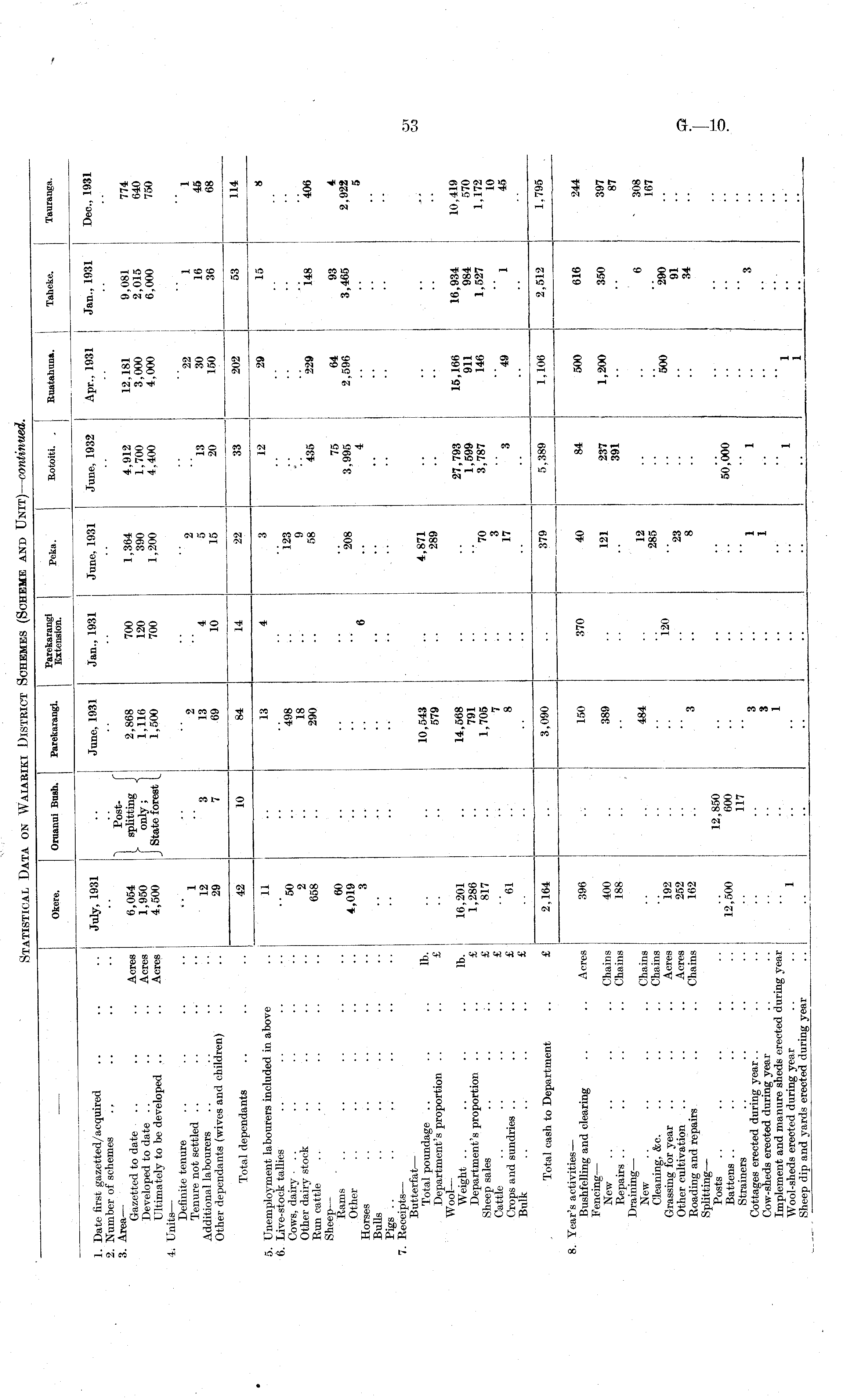 Statistical Data on Waiariki District Schemes (Scheme and Unit)—continued.