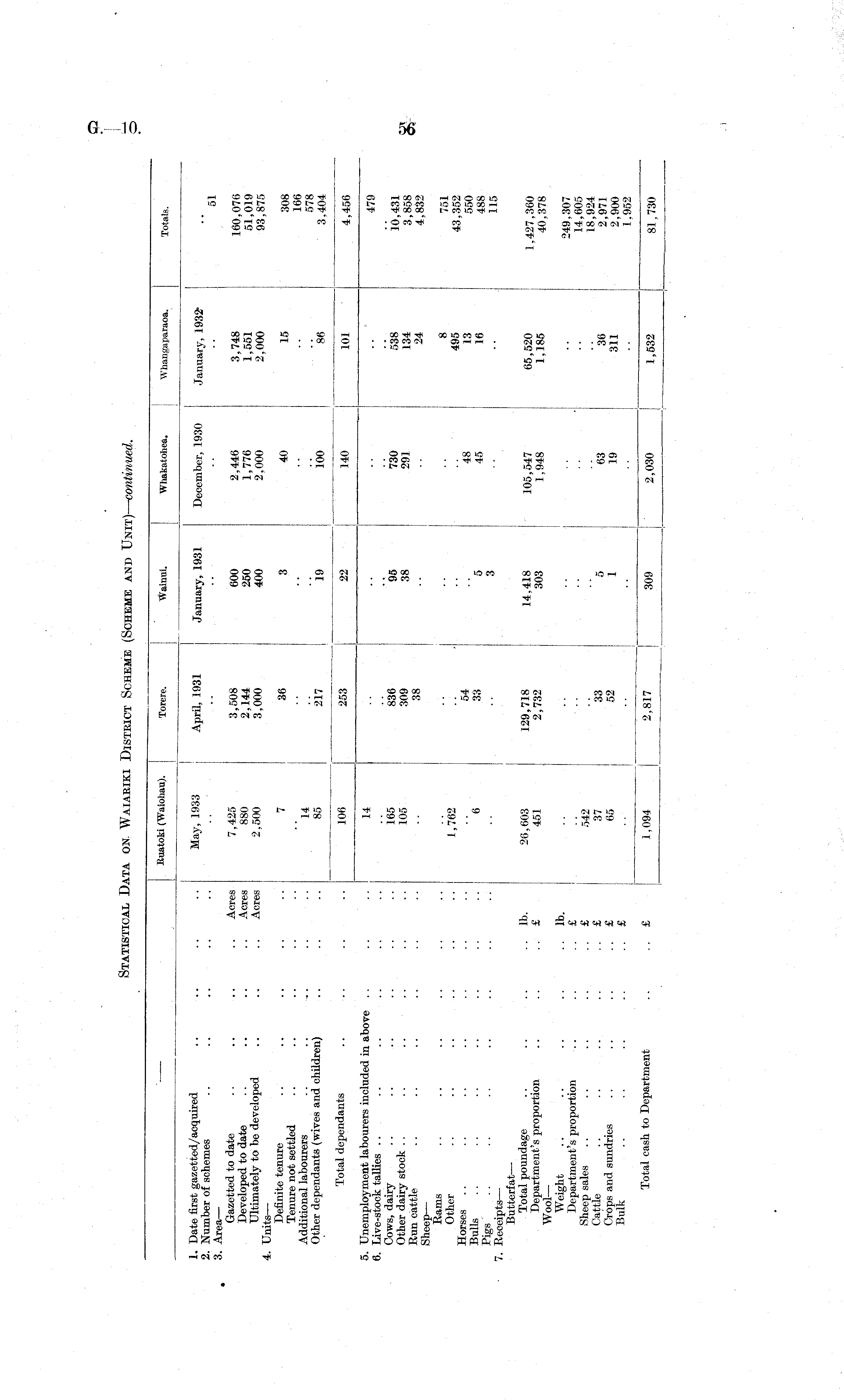 Statistical Data on Waiariki District Scheme (Scheme and Unit)-continued.