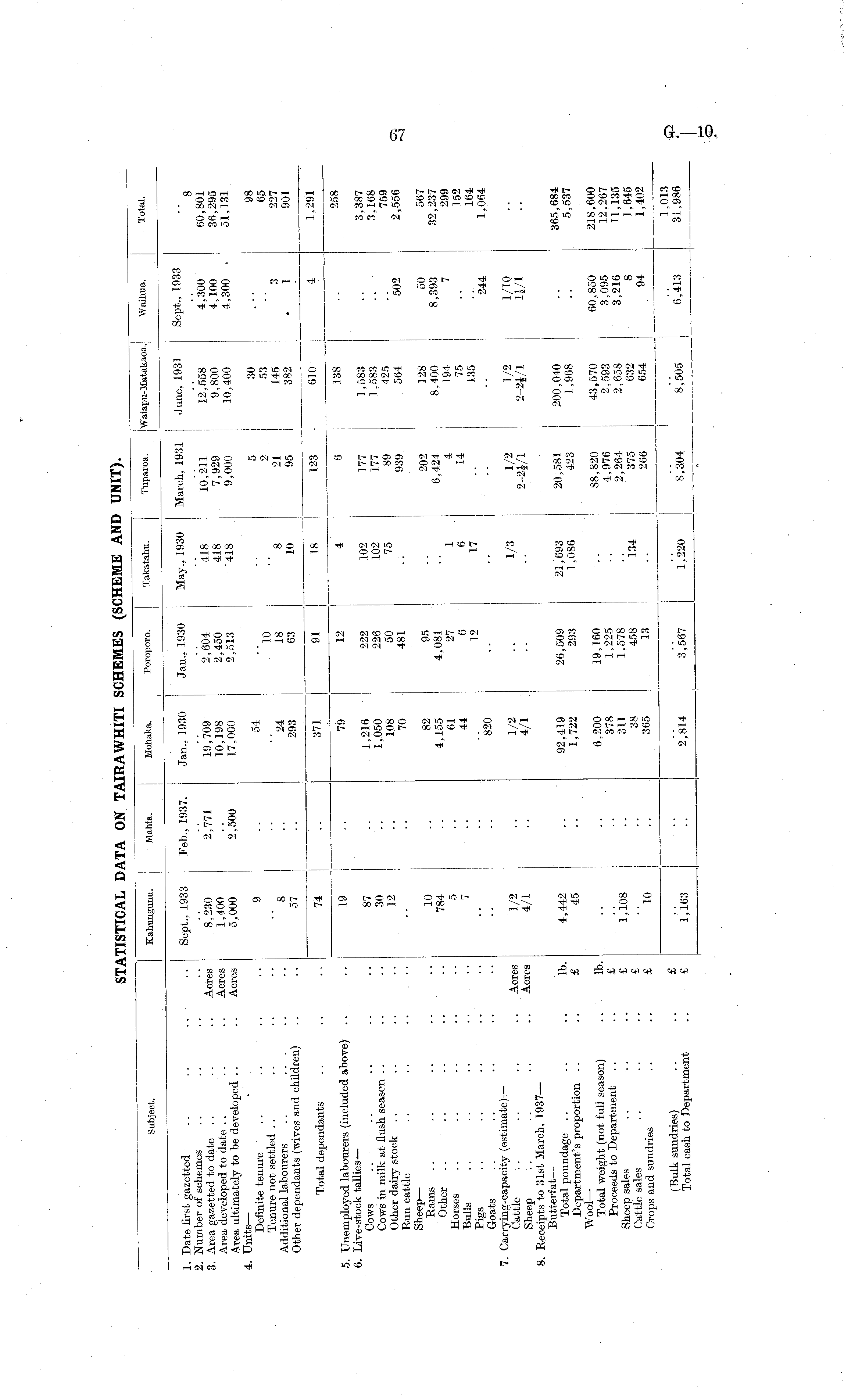 STATISTICAL DATA ON TAIRAWHITI SCHEMES (SCHEME AND UNIT).