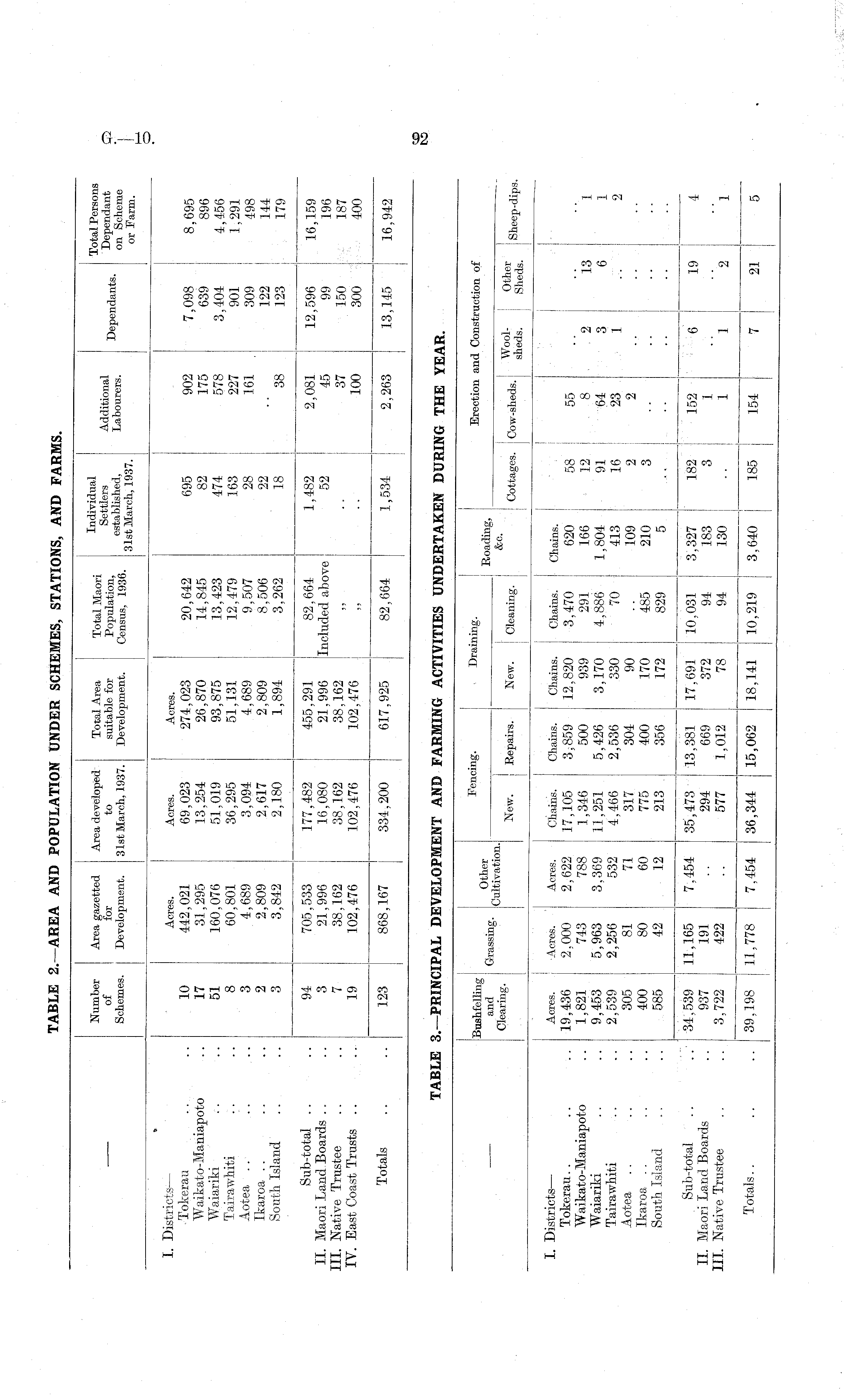 TABLE 2.—AREA AND POPULATION UNDER SCHEMES, STATIONS, AND FARMS.