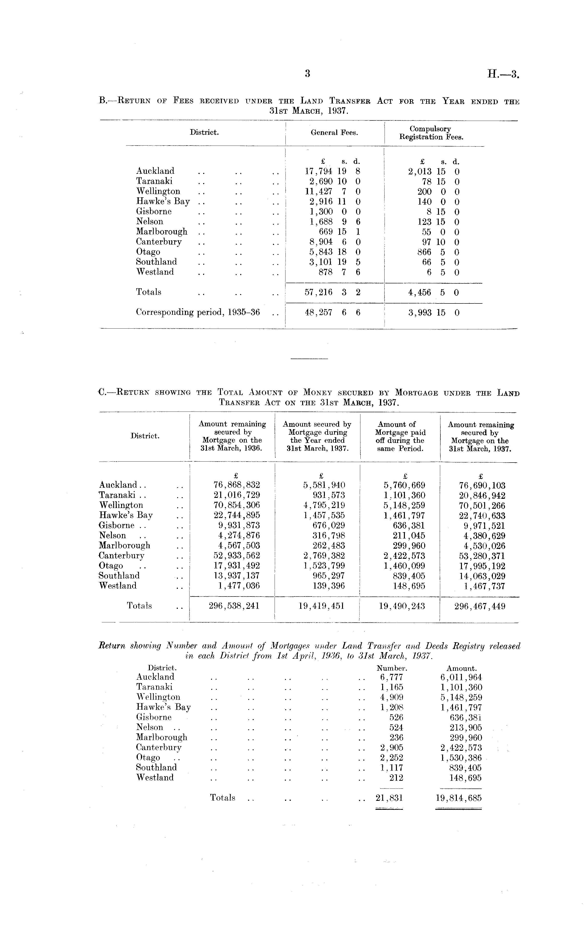 B. —Return of Fees received under the Land Transfer Act for the Year ended the 31st March, 1937.