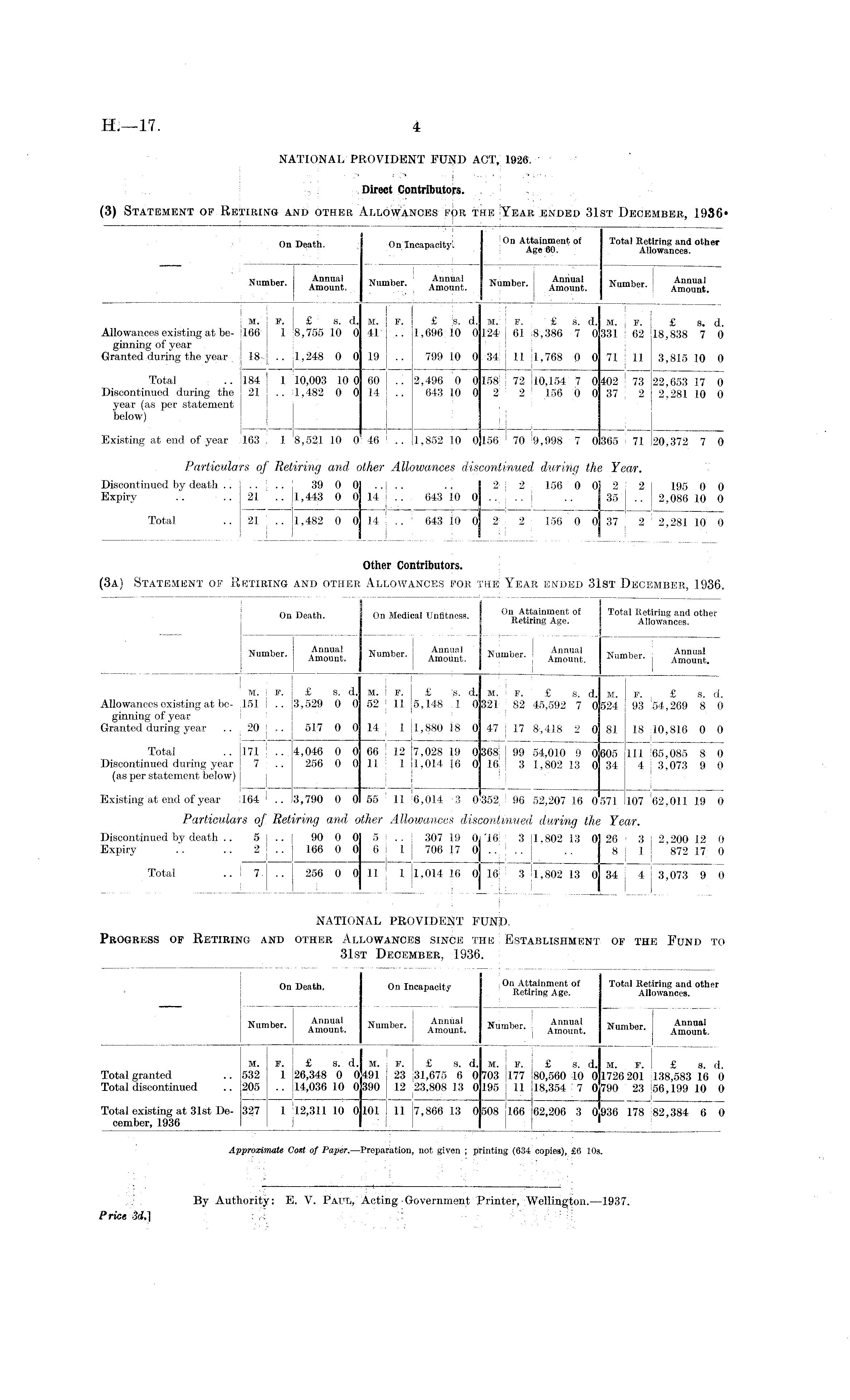 NATIONAL PROVIDENT FUND ACT, 1926. Direct Contributors. (3) Statement of Retiring and other Allowances for the Year ended 31st December, 1936.