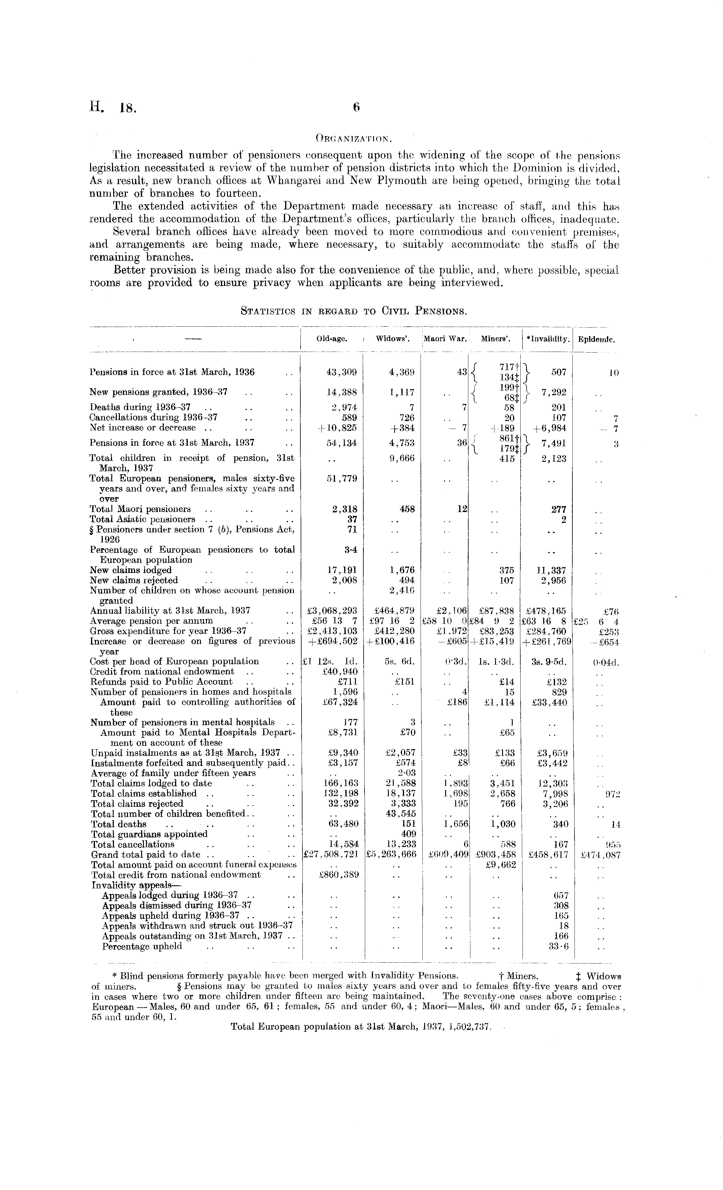The increased number of pensioners consequent upon the widening of the scope of the pensions legislation necessitated a review of the number of pension districts into which the Dominion is divided. As a result, new branch offices at Whangarei and New Plymouth are being opened, bringing the total number of branches to fourteen. The extended activities of the Department made necessary an increase of staff, and this has rendered the accommodation of the Department's offices, particularly the branch offices, inadequate. Several branch offices have already been moved to more commodious and convenient premises, and arrangements are being made, where necessary, to suitably accommodate the staffs of the remaining branches. Better provision is being made also for the convenience of the public, and, where possible, special rooms are provided to ensure privacy when applicants are being interviewed.