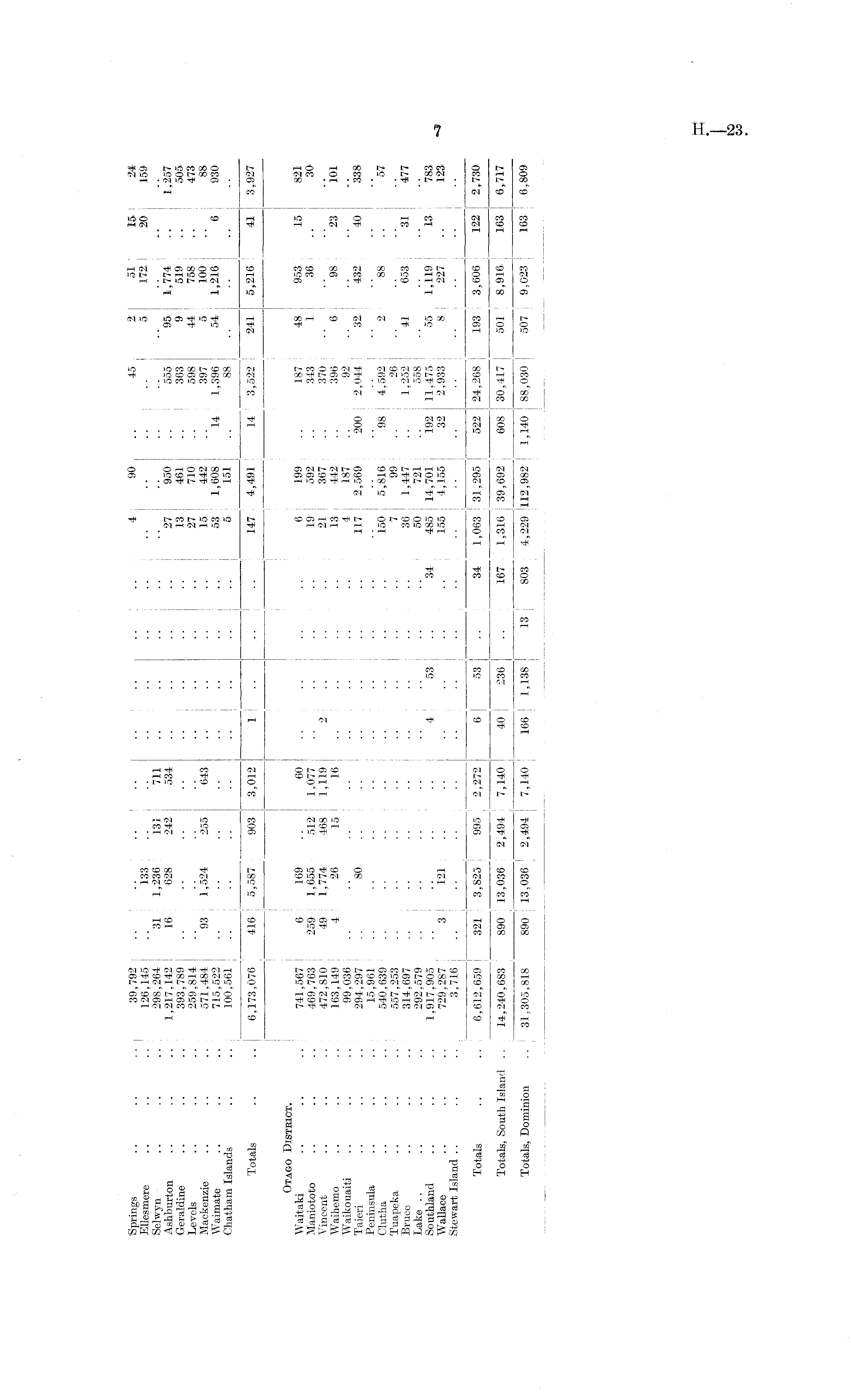 Springs .. .. .. 39,792 .. .. .. .. .. .. .. .. 4 90 .. 45 2: 51 15 24 EUesmere .. .. .. 126,145 .. 133 .. .. ! .. .. .. .. .. .. 5. 172. 20 159 Selwyn .. .. .. 298,264 31 1,236 131 711 j Ashhurton .. .. .. 1,217,142 16 628 1 242 534 j .. .. 27 950 .. 555 95- 1,774 .. 1,257 Geraldine .. .. .. 393,789 .. .. .. .. I .. .. 13 461 .. 363 9 j 519 .. 505 Levels .. .. .. 259,814 .. I- .. .. .. .. .. .. 27 710 .. 598 44 758 .. 473 Mackenzie .. .. .. 571,484 93 1,524 ! 255 643 ! .. .. 15 442 .. 397 5 100 .. 88 Waimate .. .. .. 715,522 .. .. .. .. .. j .. .. 53 1,608 14 1,396 54 1,216 6 930 Chatham Islands .. .. 100,561 .. .. .. .. J .. .. 5 151 .. 88 Totals .. .. 6,173,076 416 5,587 903 3,012 1 j .. .. 147 4,491 14 3,522 241 5,216 41 3,927 • : - - Otago District. Waitaki .. .. .. 741,567 6 169 .. 60 .. .. .. .. 6 199 ..187 48 953. 15 821 Maniototo .. .. .. 469,763 259 1,655 512 1,077 .. .. .. 19 592 ! 343 1. 36. .. 30 Vincent .. .. .. 472,810 49 1,774 468 1,119 2 ! .. .. 21 367 j 370 Waihemo .. .. ..I 163,149 4 26 15 16 .. .. .. 13 442 .. | 396 6 98 23 101 Waikouaiti .. .. .. 99,036 .. .. .. .. .. .. I .. I 4 187 .. 92 Taieri .. .. .. 294,297 .. 80 j .. .. .. | 117 2,569 200 2,044 32. 432. 40 338 Peninsula .. .. .. 15,961 .. i .. .. .... i .. i • • .. . • •• | Clutha .. .. .. 540,639 .. .. .. .. ! .. ..!..! 150 5,816 98 4,592 2 88.! .. 57 Tuapeka .. .. .. 557,253 .. .... .. .... I .. 7 99 .. 26 Bruce .. .. .. 314,697 .. .. .. .. .. .. 36 1,447 .. 1,252 41 653 3.1 477 Lake .. .. .. .. 292,579 .. .. .. .. .... .... 1 50 721 .. 558 Southland .. .. .. 1,917,905 .. .. .. .. 4 I 53 j 34 485 14,701 192 11,475 55 1,119 13, 783. Wallace .. .. .. j 729,287 3 121 .. . . j 155 4,155 32 2,933 8 227 .. 123 Stewart Island .. .. .. | 3,716 .. .. I .. .. j .. .. Totals .. .. : 6,612,659 321 3,825 J 995 2,272 6 j 53 .. 34 1,063 31,295 522 24,268 193 ! 3,606 122 2,730 Totals, South Island .. 14,240,683 890 13,036 • 2,494 7,140 40 236 .. 167 1,316 39,692 j 608 30,417 j 601 ' 8,916. 163 6,717 Totals, Dominion .. I 31,305,818 890 13,036 2,494 7,140 166! 1,138 13 803 4,229 112,982 1,140 88,030 507 9,023 163 6,809