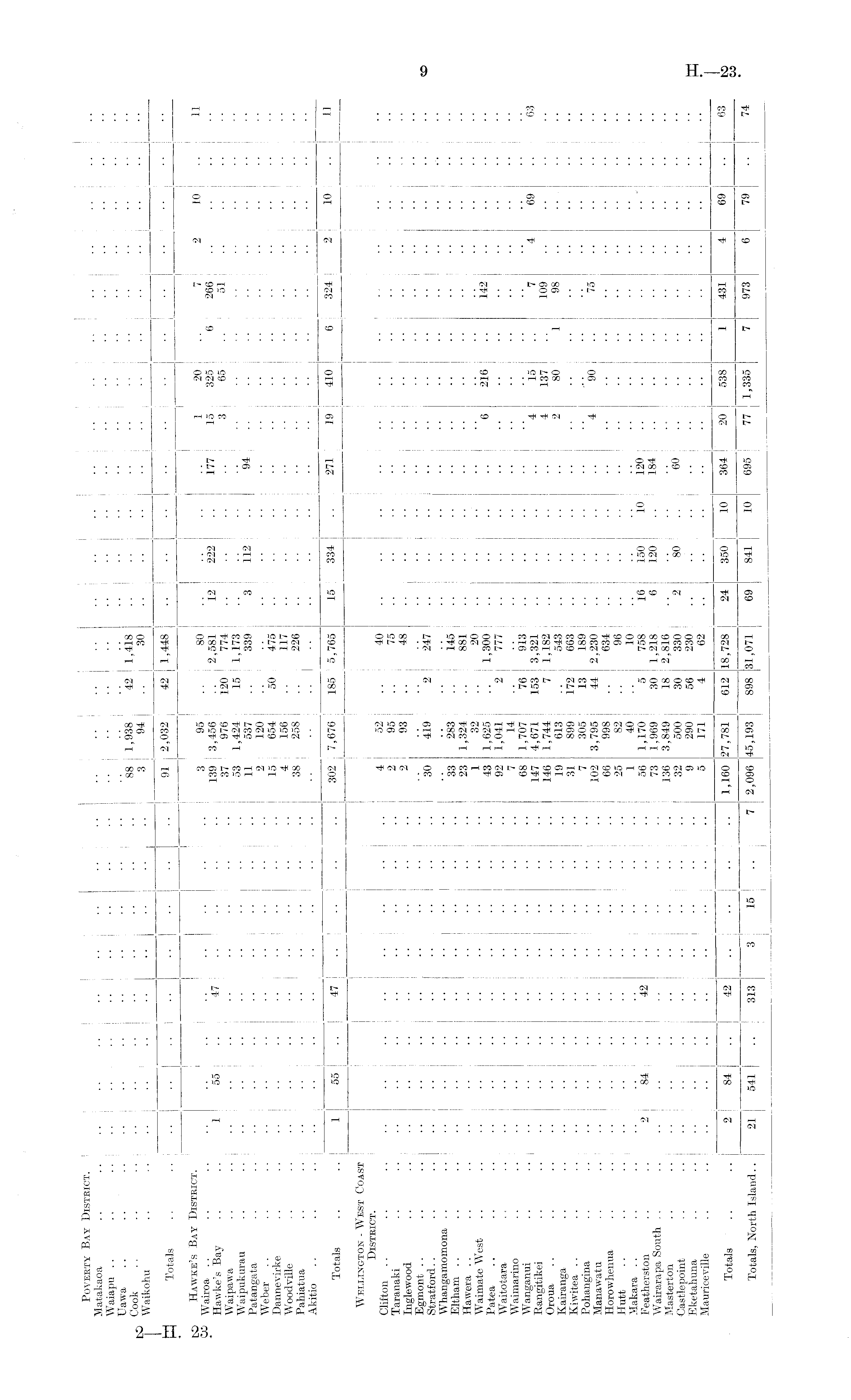 Poverty Bay District. I ! j j | j | Matakaoa .. .. j • • j j i j • • • • * * * * '' '' '' ' ' '' ' * " * " * J Waiapu .. .. .. ] I • • • • | • • i rZT " " " j | ; ;; ;; ' 88 1; 93 8 '42 iiis !' Waikohu !! ".I i". j " | !! •• •• 3 94 .. .. .. •• • •• " ' ' H_ Totals .. .. | 1 ■■ j «I 2 > 032 42 " • ■■ •' Hawke's Bay Distbiot. 1 j 3 95 . . 80 1 20 . . 7 2 10 .. 11 HX\ E a v " " "i '55 '47 1 " ;; "I m 3,456 ;; 2,581 '12 222 .. 177 15 325 6 266 RSK." :: :: " i g ,™ » , ™ » 65 •• 51 ••• i - :: :: Wairnikiiran . •• •• •• •• •• •• 1,424 15 1,173 Patangata " !! ! 'J ?37 .. 339 3 112 .. 94 .. .. .. | .. ;; •• •• •• Dannevirke !! " !! w •• •• •• I " •• •• 15 ®® 4 50 4 ™ I " " !! S e :: :: :: :: :: :: :: | :: :: :: - - :: « :: - - - » ;; ;; i; ;; ! i; :: ;; Akitio .. .. .. • • • • • • • • • • • • • • • • • • ' * * * '' *' ___U 1 — Totals 7 55 47~ 1 302 7,676 185 5,765 15 334 .. 271 19 410 6 324 2 10 1] _ | I Wellington - West Coast Distbict. ! 1 I ■„ Clifton .. .. j ! • • • • 4 52 .. 40 Taranaki .. .. .. •• ••!••••!'•• .. .. 2 95 .. 75 Inglewood ! •• | •• 1 •• 2 93 •• 48 .. ; IfiS:: :: :: :: :: : :: :: :: :: :: :: *> «» "* " - Whangamomona .. ! •• j " " j :: :: :: :: :: :: :: :: :: :: :: 1 Jl :: :: ! :: :: :: :: :: S7 teWest :: :: :: « i, 6 l :: 1,300 :: :: :: :: "e m :: 142 Waitotara' " !! " 92 l' 0 " 2 777 !! " " " 68 1,707 " 7 6 913 i! i! !! !! " X •• •• " ' Ransritikei " 147 4 ,671 153 3 > 321 4 15 7 Oroua 1« 1,744 7 1,182 4 137 .. 109 Kairanga'' !! !! !! " 19 613 .. 543 2 80 1 98 Kiwitea 31 899 172 663 Pohangina .. .. ! •• •• •• •• •• •• 7 305 13 189 j .. . • • • •• •• Manawatu .. .. 102 3,795 44 2,230 4 90 .. /5 Horowhenna .. .. : . . . . . ■ • • • • • • • ■ • ■ 66 998 .. 634 j Hutt .. .. .. j 25 82 .. 96 Makara . • • • • • • • • • 1 40 . . 10 ; . . Featherston !! " "2 '84 !. 42 56 1,170 5 758 16 150 10 120 * Wairarapa South .. .. j .. .. .. •• •• •• •• •• 73 1,969 30 1,218 , 6 1^0 Masterton .. .. I .. .. •• •• •• •• 136 3,849 18 2,816 j .. .. •• •• Castlepomt . . .. ! 32 500 30 330 ! 2 80 .. 60 Eketahuna .. .. j 9 290 56 230 Mauriceville . . .. i • • • • .. • • • • • • • • • • '' '' ' ' '' __[J L_ Totals .. .. 2~ 84 ~ 42 .. | .. 1,160 27,781 612 18,728 24 350 10 364 20 538 1 431 4 69 ■ ■ 63 Totals, North Island.. 21 541 .. 313 3 15 1 7 2,096 45,193 898 31,071 69 841 10 695 77 1,335 7 973 6 79 74