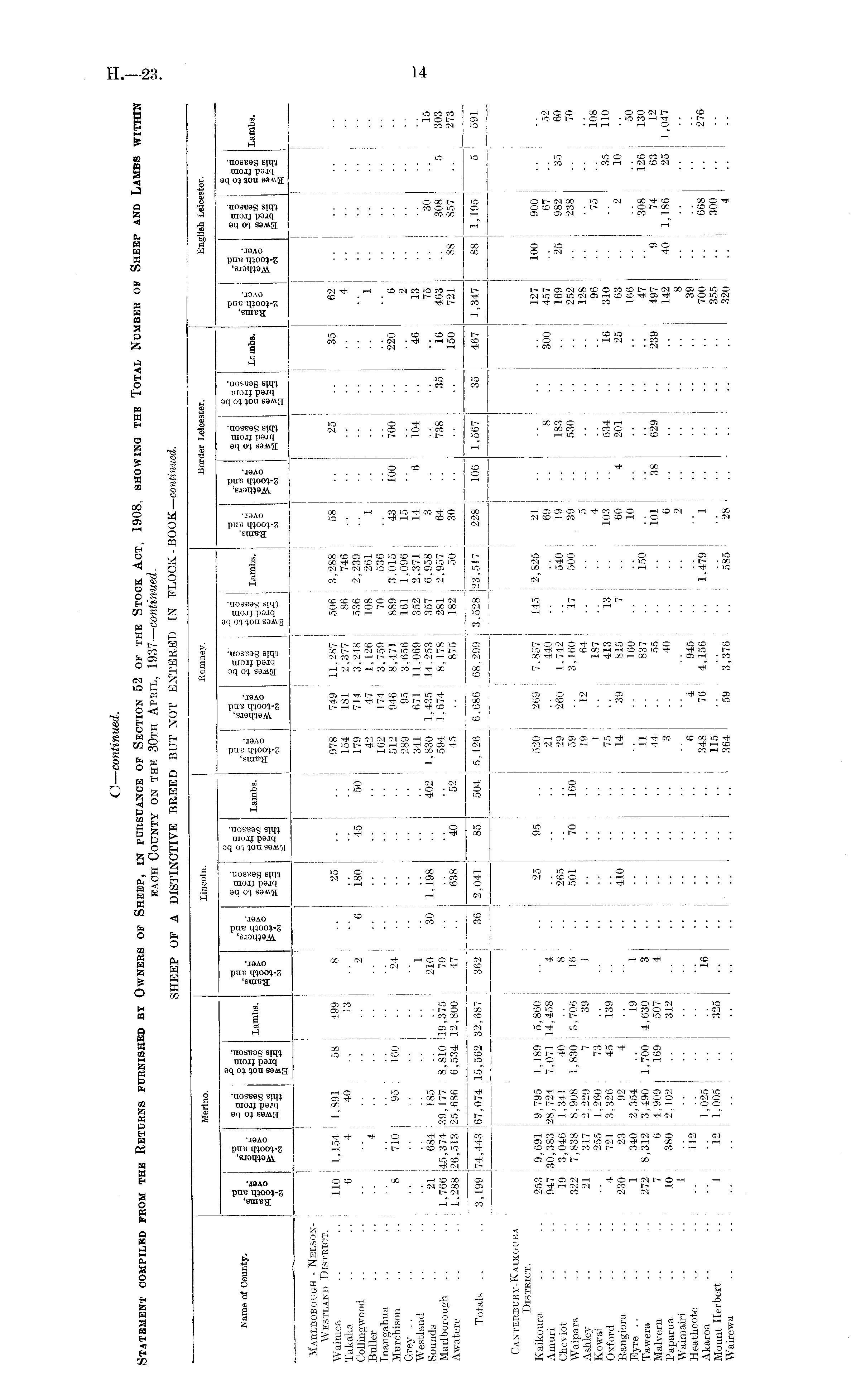 C— continued. Statement compiled from the Returns furnished by Owners of Sheep, in pursuance of Section 52 of the Stock Act, 1908, showing the Total Number of Sheep and Lambs within each County on the 30th April, 1937— continued. SHEEP OF A DISTINCTIVE BREED BUT NOT ENTERED IN FLOCK -BOOK— continued.