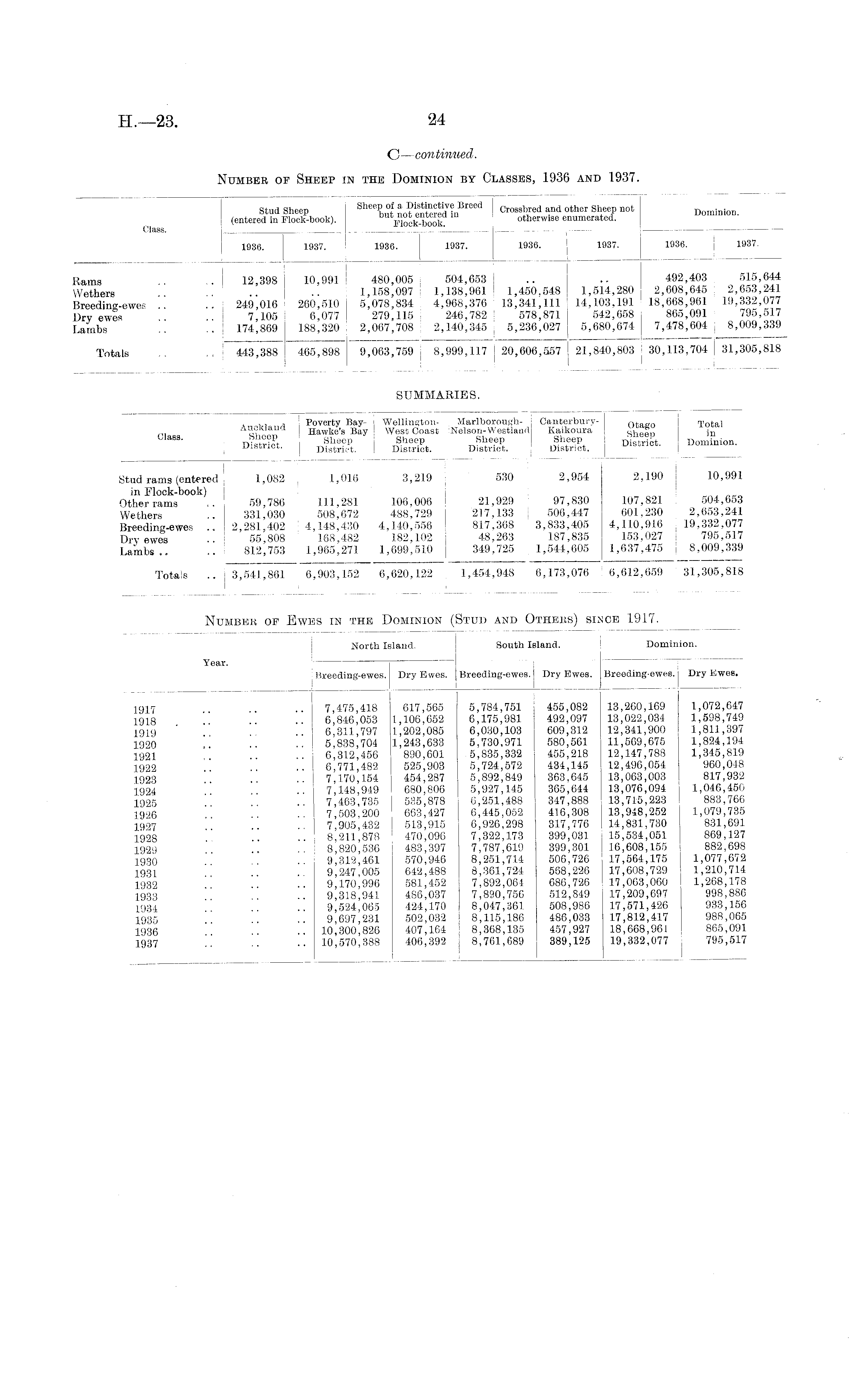 C —continued. Number of Sheep in the Dominion by Classes, 1936 and 1937.