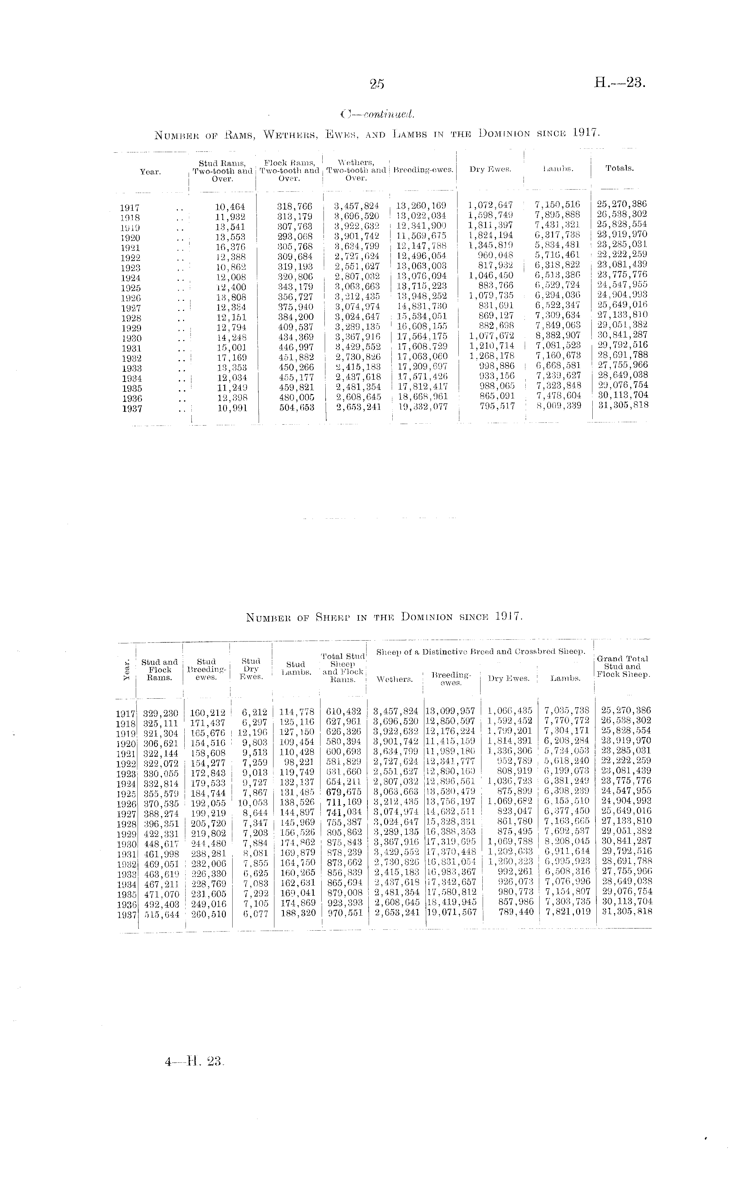 C —continued. Number of Rams, Wethers, Ewes, and Lambs in the Dominion since 1917.