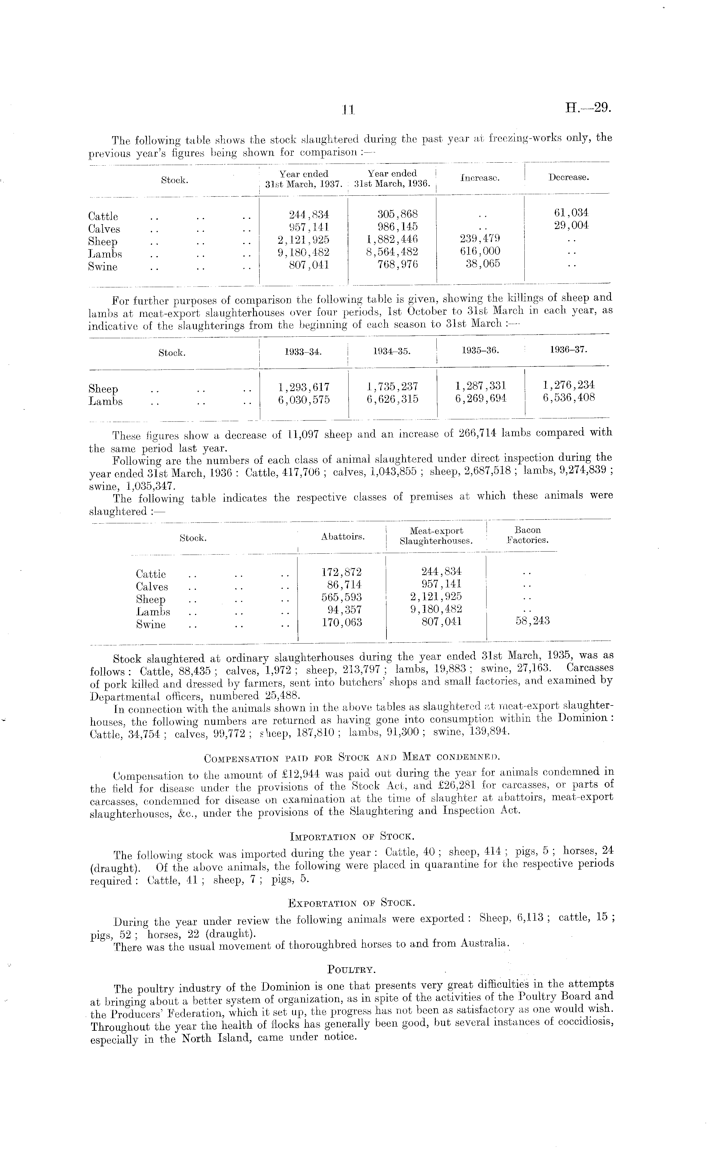 The following table shows the stock slaughtered during the past year at freezing-works only, the previous year's figures being shown for comparison : —