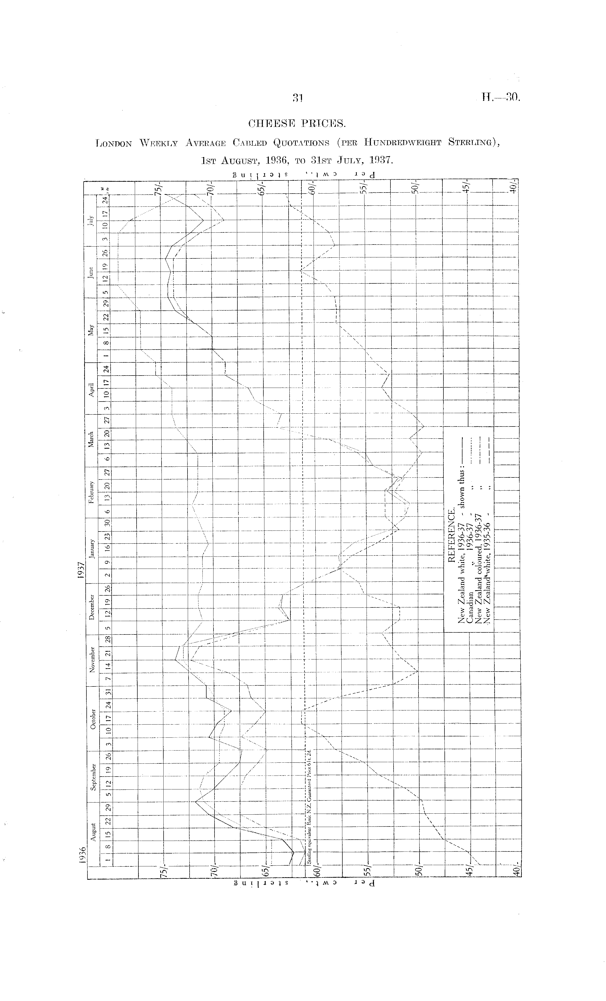 CHEESE PRICES. London Weekly Average Cabled Quotations (per Hundredweight Sterling), 1st August, 1936, to 31st July, 1937.