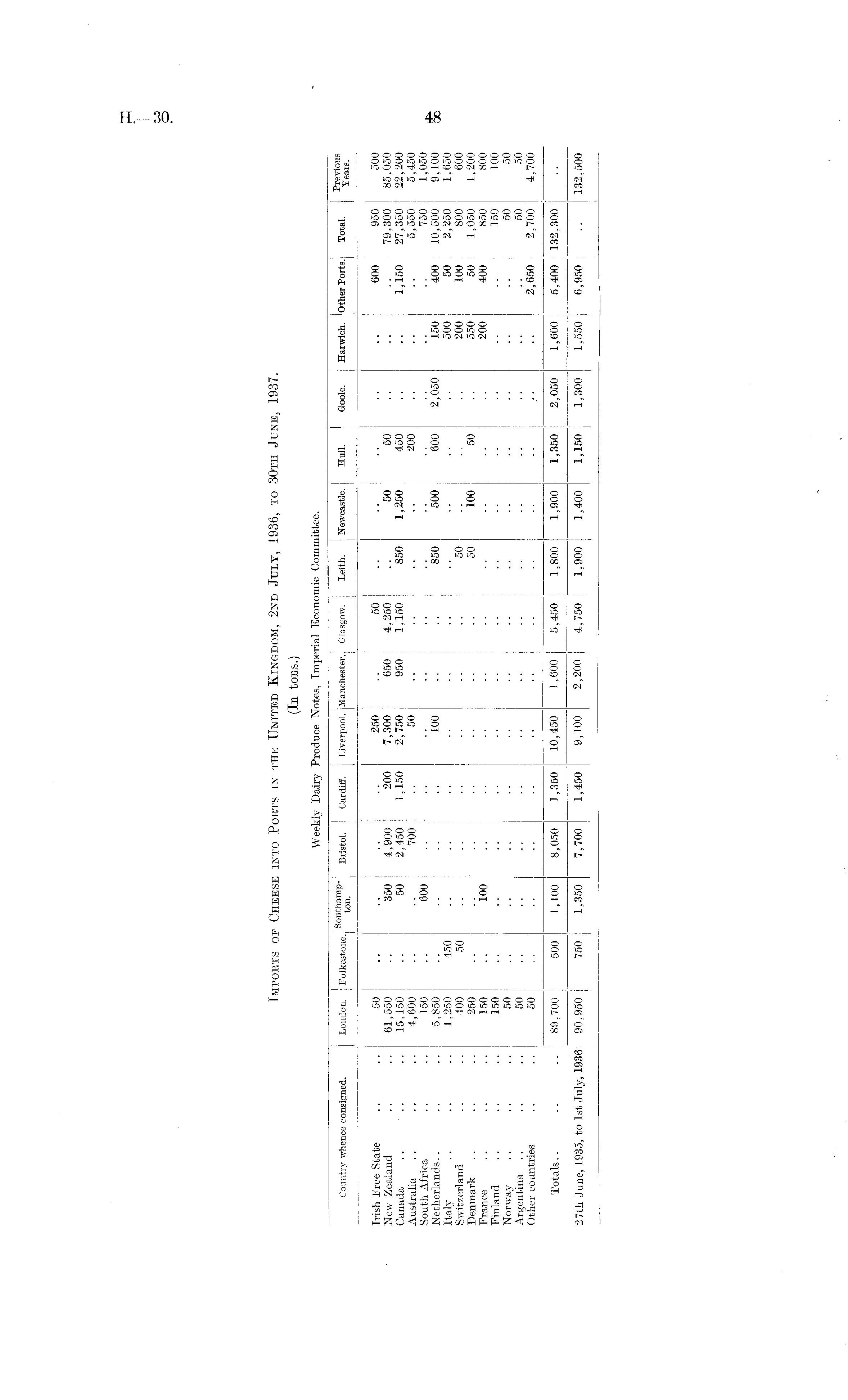 Imports of Cheese into Ports in the United Kingdom, 2nd July, 1936, to 30th June, 1937. (In tons.) Weekly Dairy Produce Notes, Imperial Economic Committee.