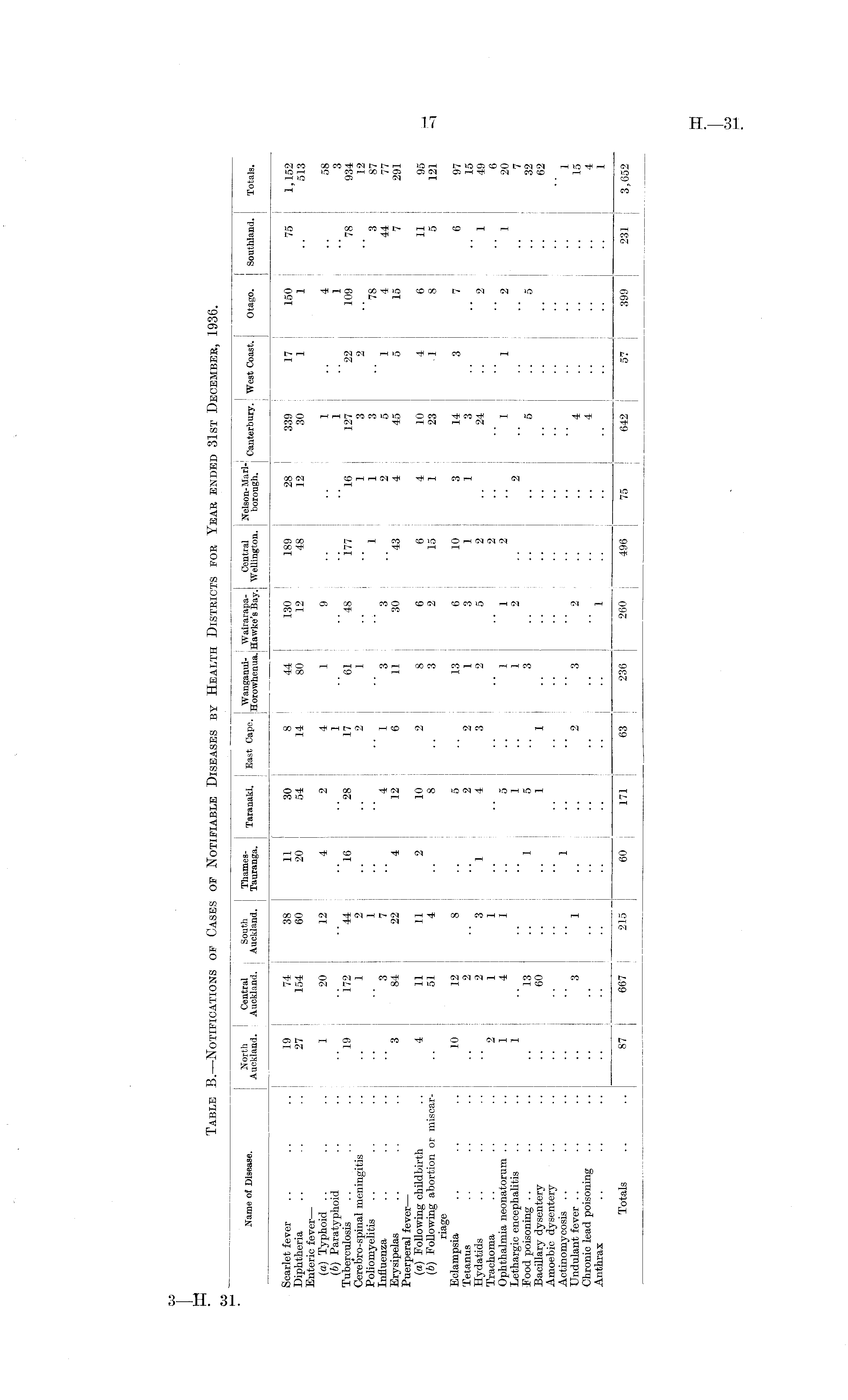 Table B.—Notifications of Cases of Notifiable Diseases by Health Districts for Year ended 31st December, 1936.