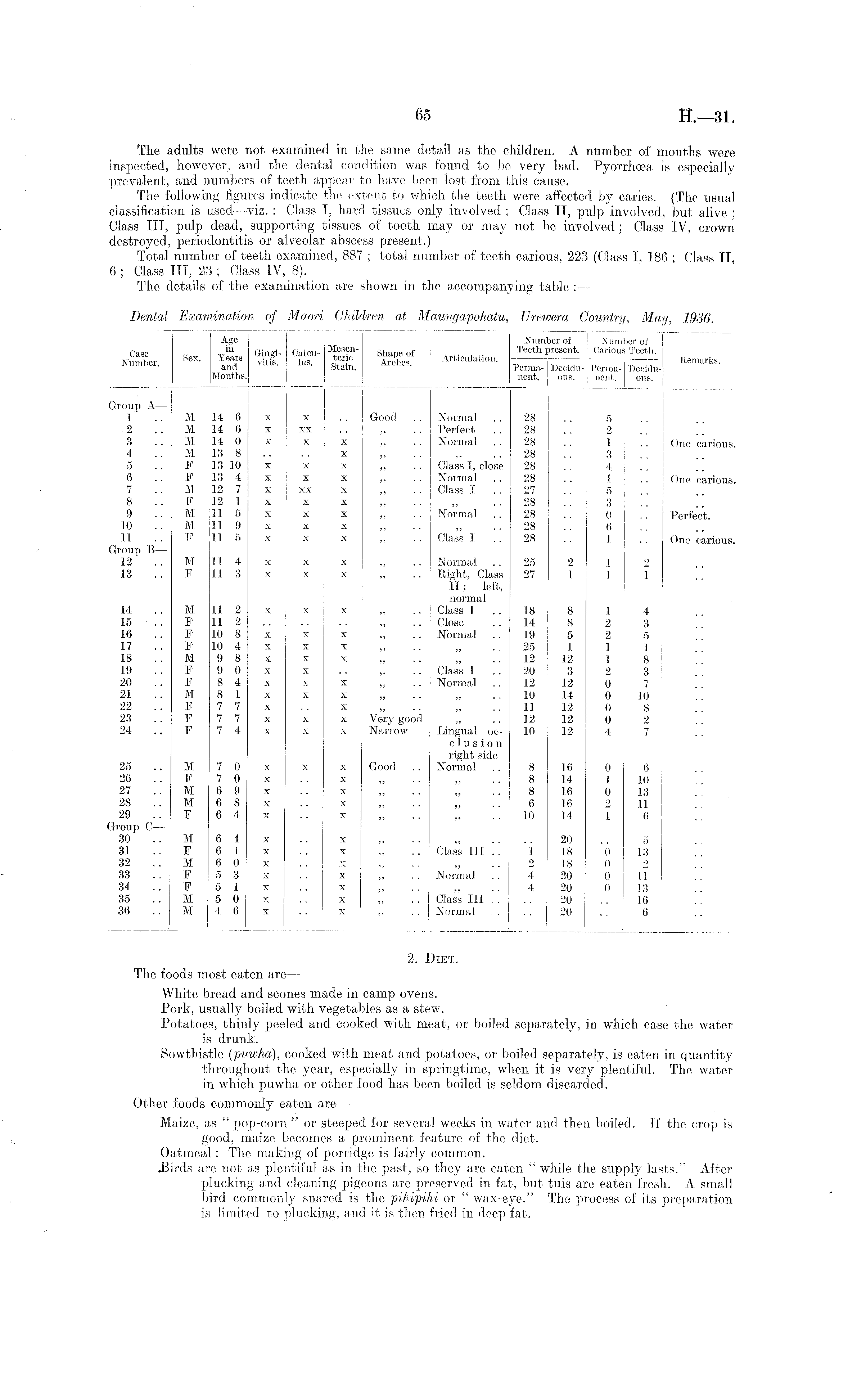 Dental Examination of Maori Children at Maungapohatu, Urewera Country, May, 1936.