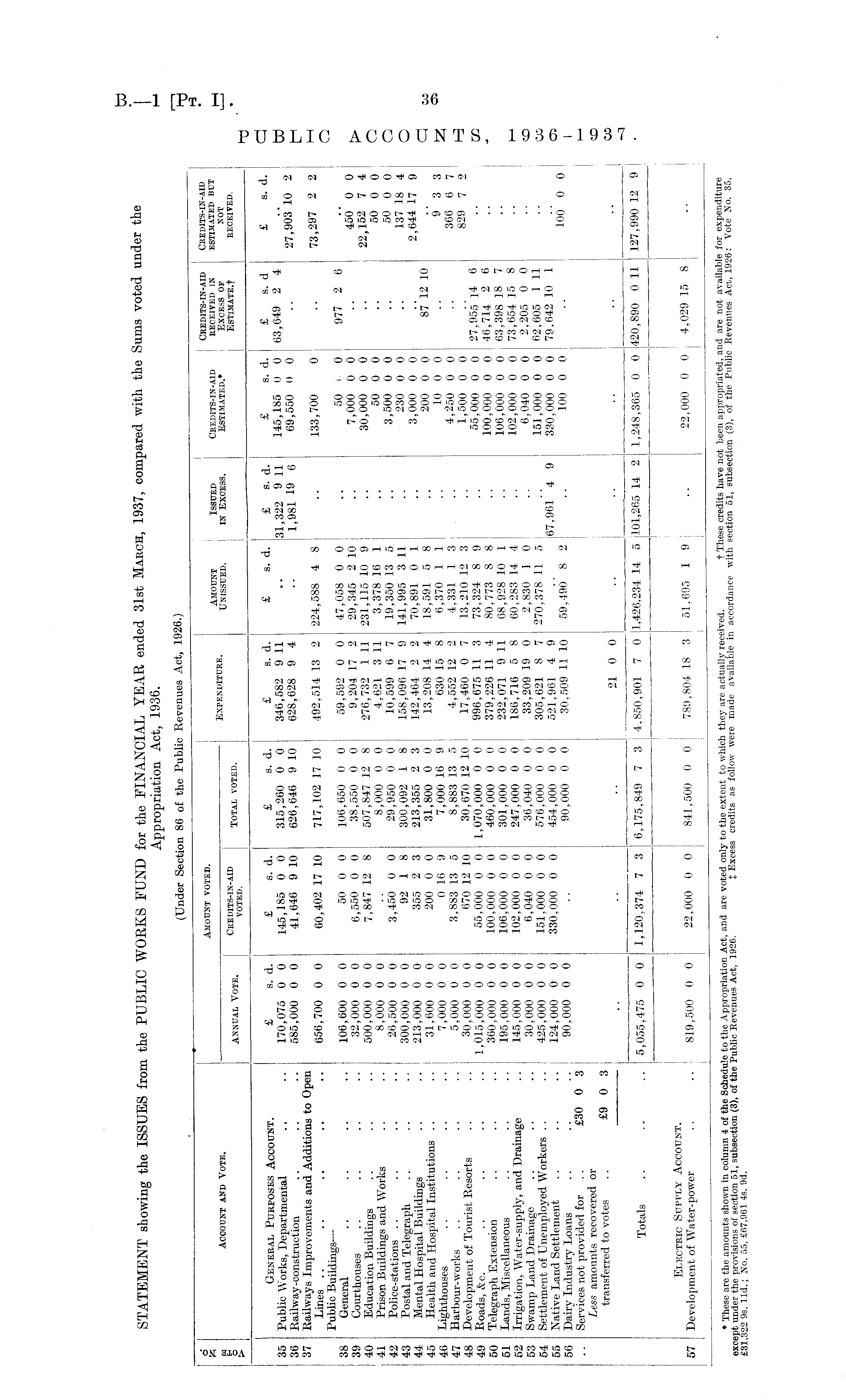 STATEMENT showing the ISSUES from the PUBLIC WORKS FUND for the FINANCIAL YEAR ended 31st March, 1937, compared with the Sums voted under the Appropriation Act, 1936.