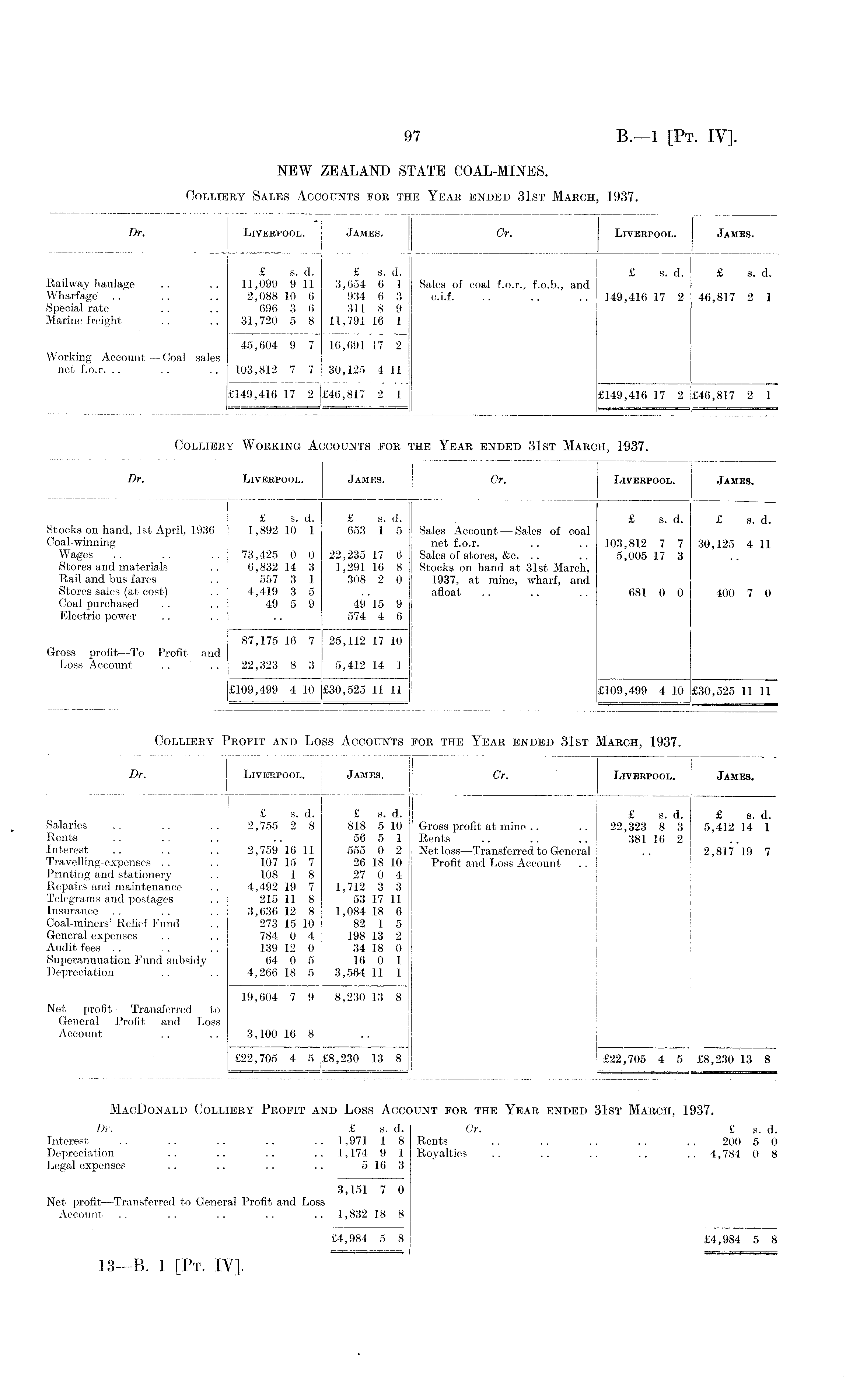NEW ZEALAND STATE COAL-MINES. Colliery Sales Accounts for the Year ended 31st March, 1937.