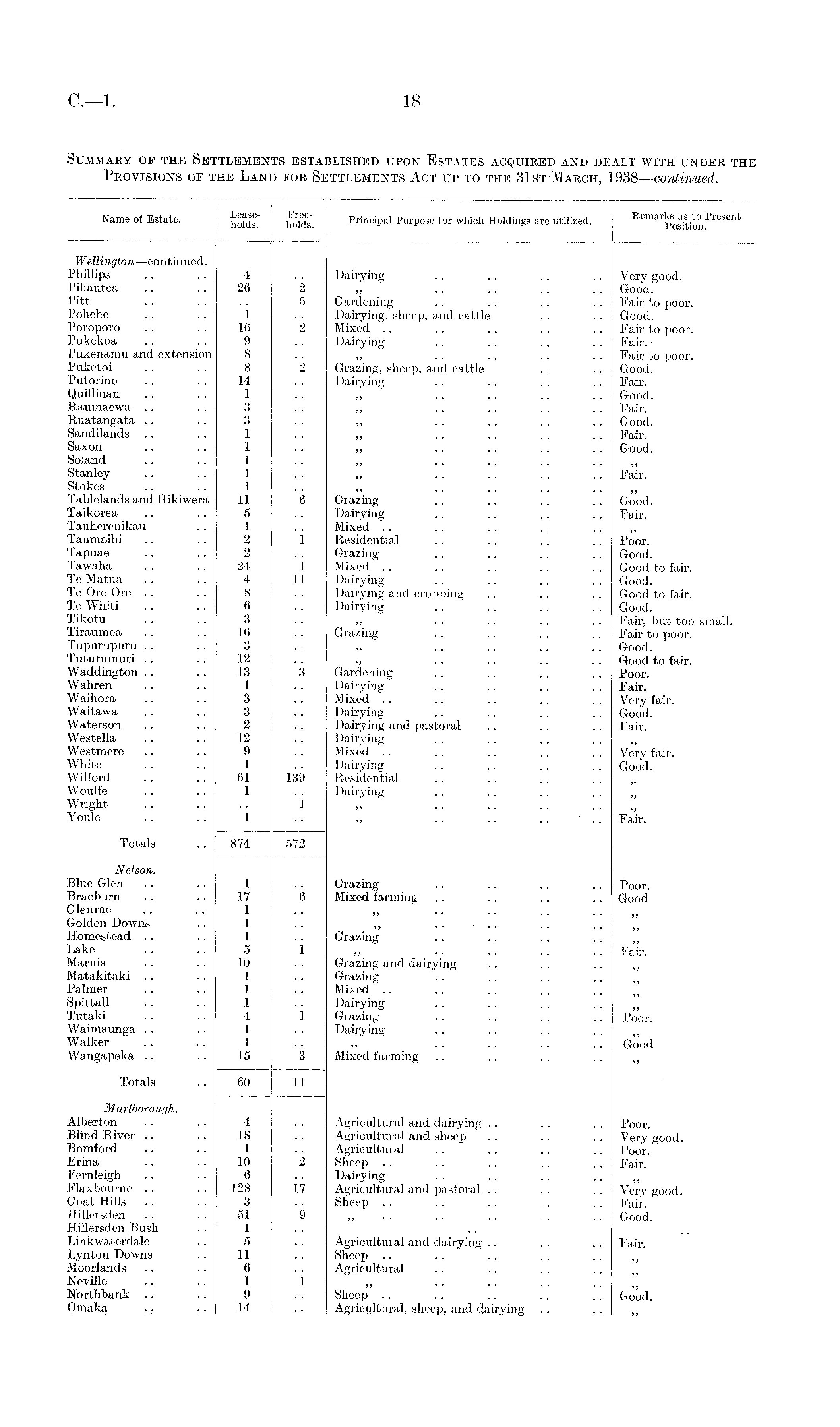 Summary of the Settlements established upon Estates acquired and dealt with under the Provisions of the Land for Settlements Act up to the 31st March, 1938 —continued.