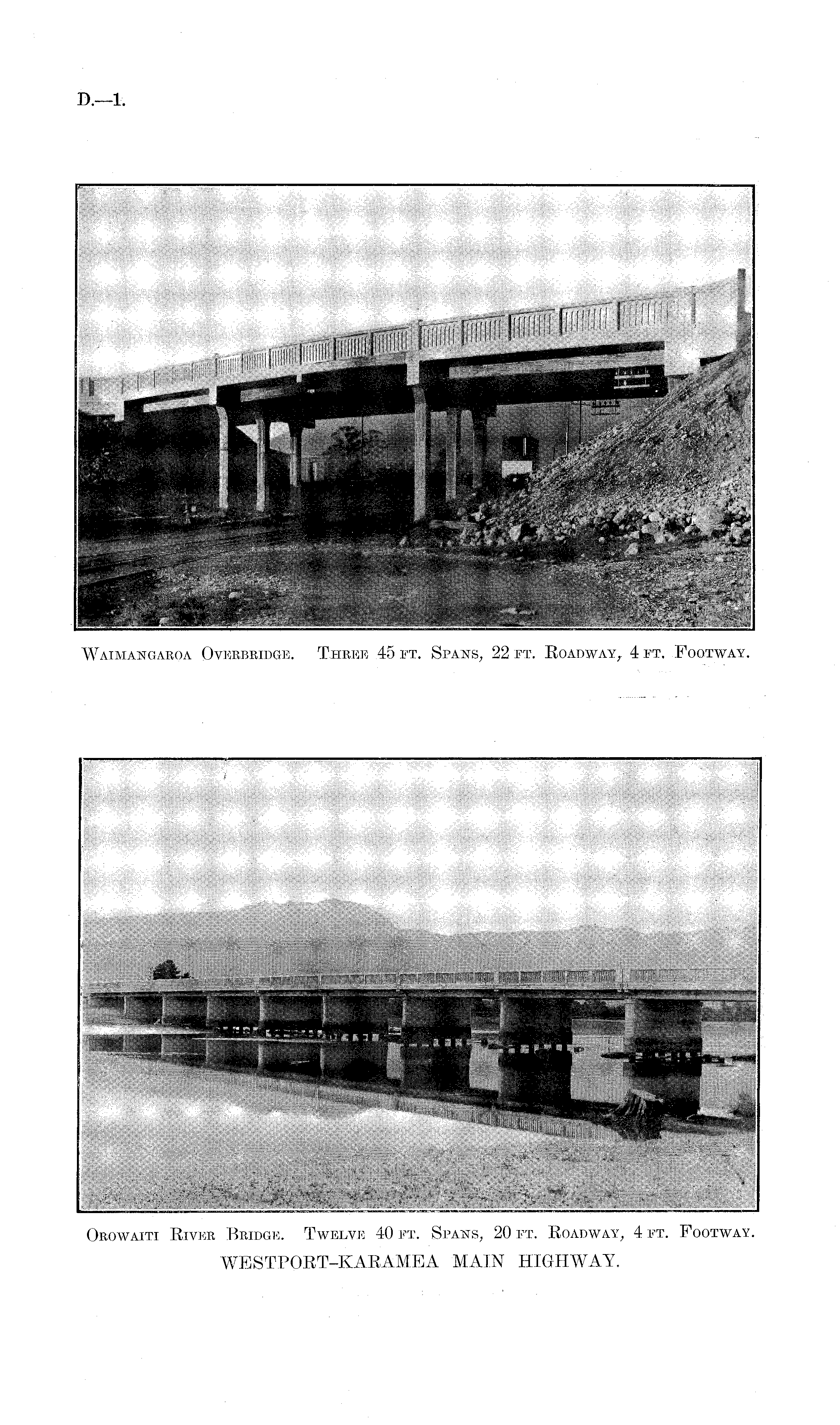 Waimangaroa Overbridge. Three 45ft. Spans, 22ft. Roadway, 4ft. Footway.