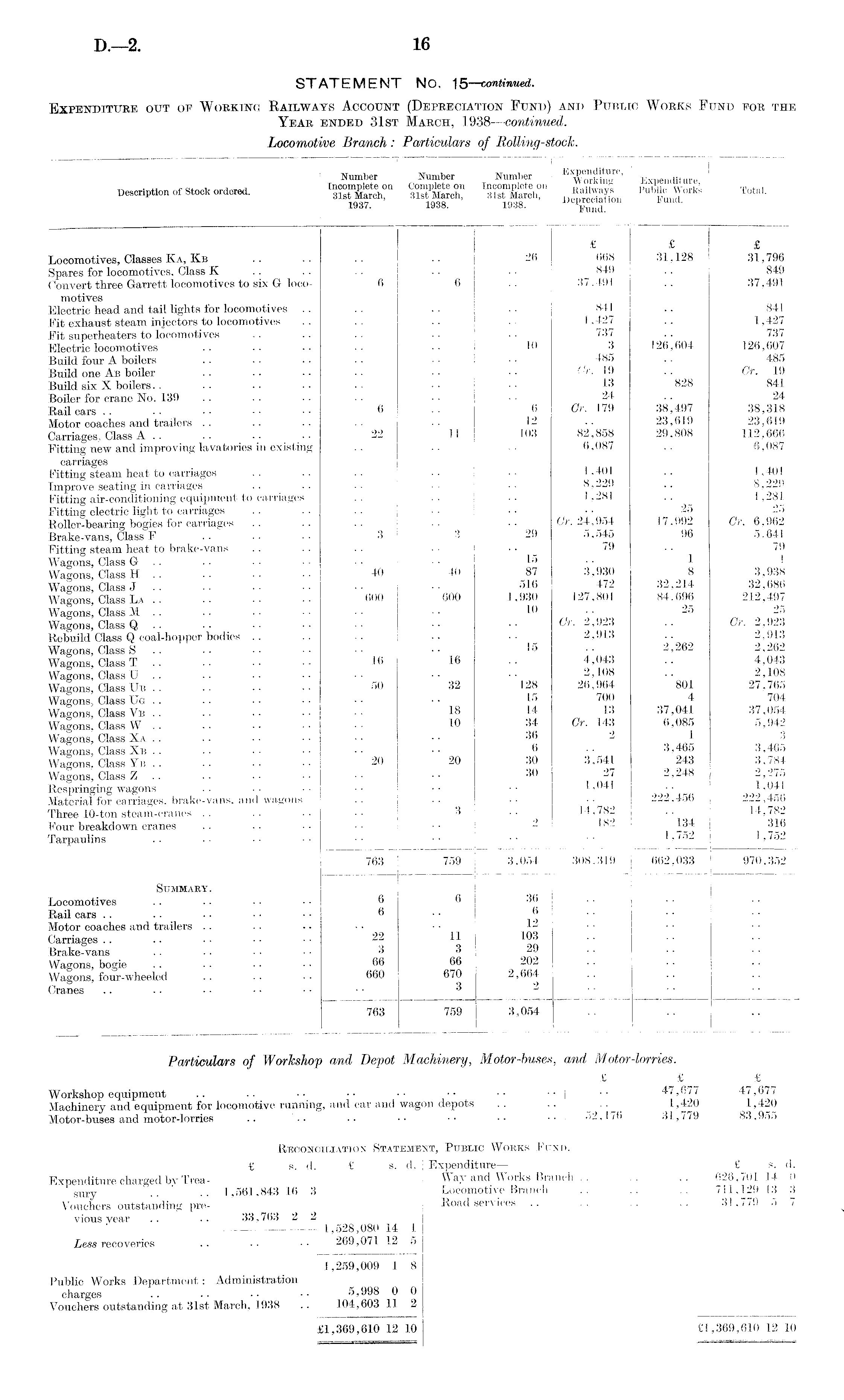 STATEMENT No. 15 —continued. Expenditure out of Working Railways Account (Depreciation Fund) and Public Works Fund for the Year ended 31st March, 1938 —continued. Locomotive Branch: Particulars of Rolling-stock.